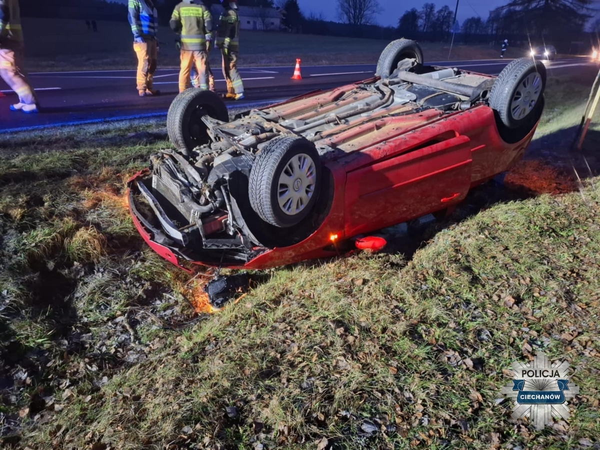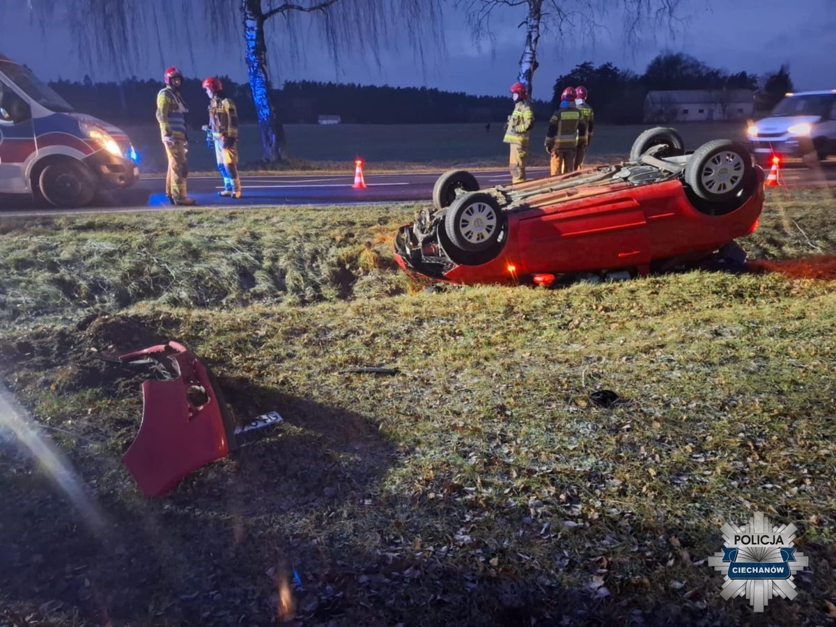 W minioną sobotę (21.12) około godz. 6.50 dyżurny ciechanowskiej komendy został poinformowany o zdarzeniu drogowym, do którego doszło na drodze wojewódzkiej nr 615 w Pniewie Wielkim. Jak ustalili interweniujący policjanci, kierująca oplem, 23-letnia mieszkanka powiatu ciechanowskiego nie dostosowała prędkości do warunków na drodze, straciła panowanie nad pojazdem i wjechała do rowu, a następnie dachowała. Kobieta nie odniosła obrażeń, była trzeźwa. Została ukarana mandatem karnym.
