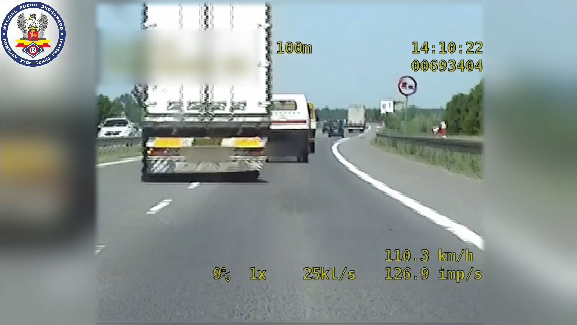 W tym przypadku policjanci z warszawskiej ?drogówki? patrolując odcinek drogi S-8 ujawnili kierującego samochodem ciężarowym, który pomimo zakazu wyprzedzania wyrażonego znakiem B-26 wykonał jednak ten manewr. Niestety, jak widać na filmie niektórzy kierowcy mają za nic znaki drogowe i pomimo grożących im konsekwencji łamią przepisy ruchu drogowego. Policjanci zatrzymali kierującego, nałożyli na niego mandat karny, a do jego konta ?dopisali punkty karne?.