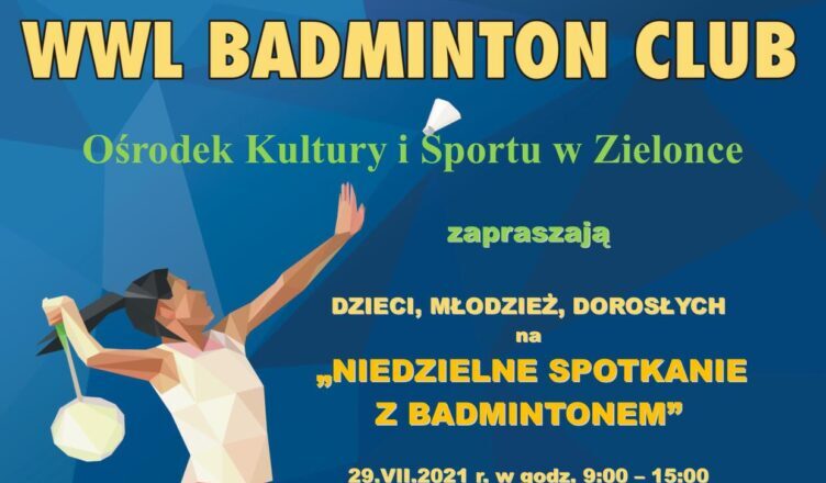 WWL Badminton Club oraz Ośrodek Kultury i Sportu zapraszają dzieci, młodzież i dorosłych na „Niedzielne spotkanie z badmintonem”.