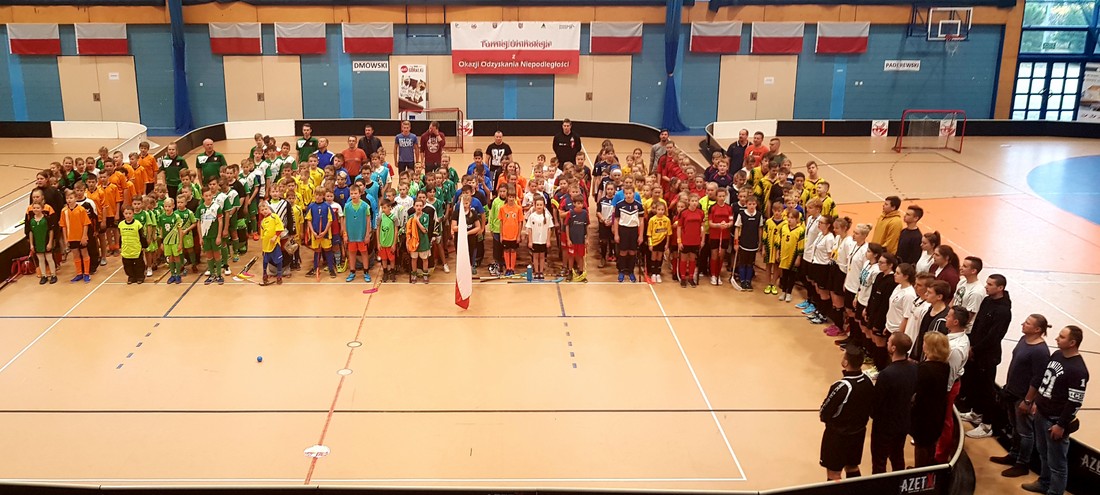 Wyjątkowym wydarzeniem było o godz. 12.00 odśpiewanie hymnu narodowego przez wszystkich zgromadzonych na hali w Zielonce. Cieszymy się, że w tak ważnym dniu turniej miał tak podniosły charakter.