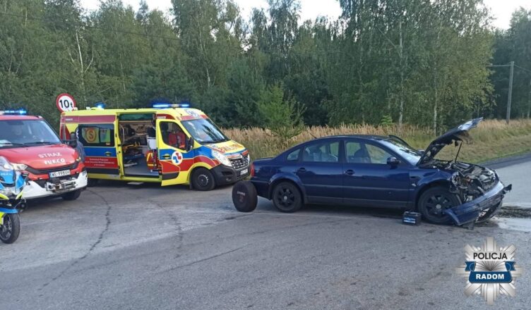 Oficer dyżurny Komendy Miejskiej Policji w Radomiu w sobotę (23.08) otrzymał zgłoszenie o wypadku w miejscowości Garno. Jak wynika ze wstępnych ustaleń, 43-latek kierujący pojazdem marki VW na skrzyżowaniu najprawdopodobniej nie ustąpił pierwszeństwa i zderzył się z pojazdem marki Mercedes, którym kierował 38-latek. Po zderzeniu kierowca i czterech pasażerów z Mercedesa zostało przewiezionych do szpitala na badania.