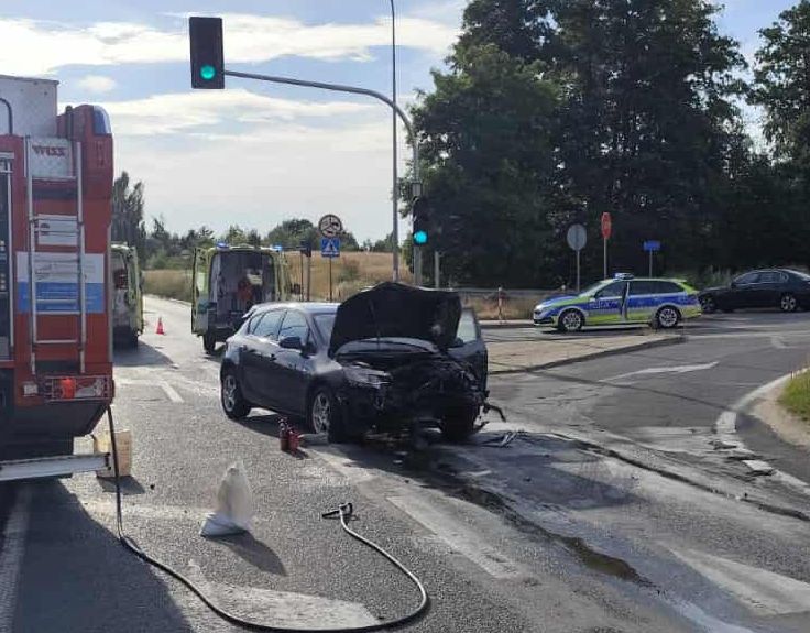 Na drodze krajowej nr 62 26-letni kierujący oplem skręcając w lewo najprawdopodobniej nie ustąpił pierwszeństwa 37-letniemu kierującemu toyota, który jechał w przeciwnym kierunku. W wyniku poniesionych obrażeń dwoje pasażerów toyoty trafiło do szpitala.