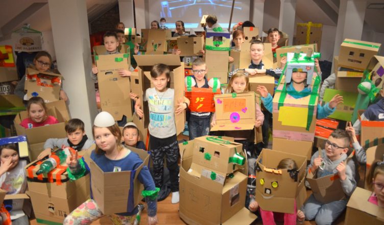Warsztaty z legorobotyki i kodowania, poprowadzili animatorzy z Centrum Kreatywności i Zabawy Kółko i Krzyżyk. Uczestnicy Nocy na poszczególnych stanowiskach, samodzielnie budowali, układali i przestawiali. Wszystko w duchu kreatywności i dobrej zabawy. R2-D2 czy WALL-E, te filmowe roboty znają chyba wszyscy, ale takich robotów, jakie opanowały bibliotekę podczas Nocy, światowa kinematografia nie widziała, a wystarczyły: karton, taśma klejąca, plastikowe butelki i kubki. Jak zwykle nieocenioną pomocą wykazali się nasi Wolontariusze z Ligi Niezwykłych Wolontariuszy, którzy jak się okazało, oprócz talentu do pomagania, mają również talent plastyczny i muzyczny.