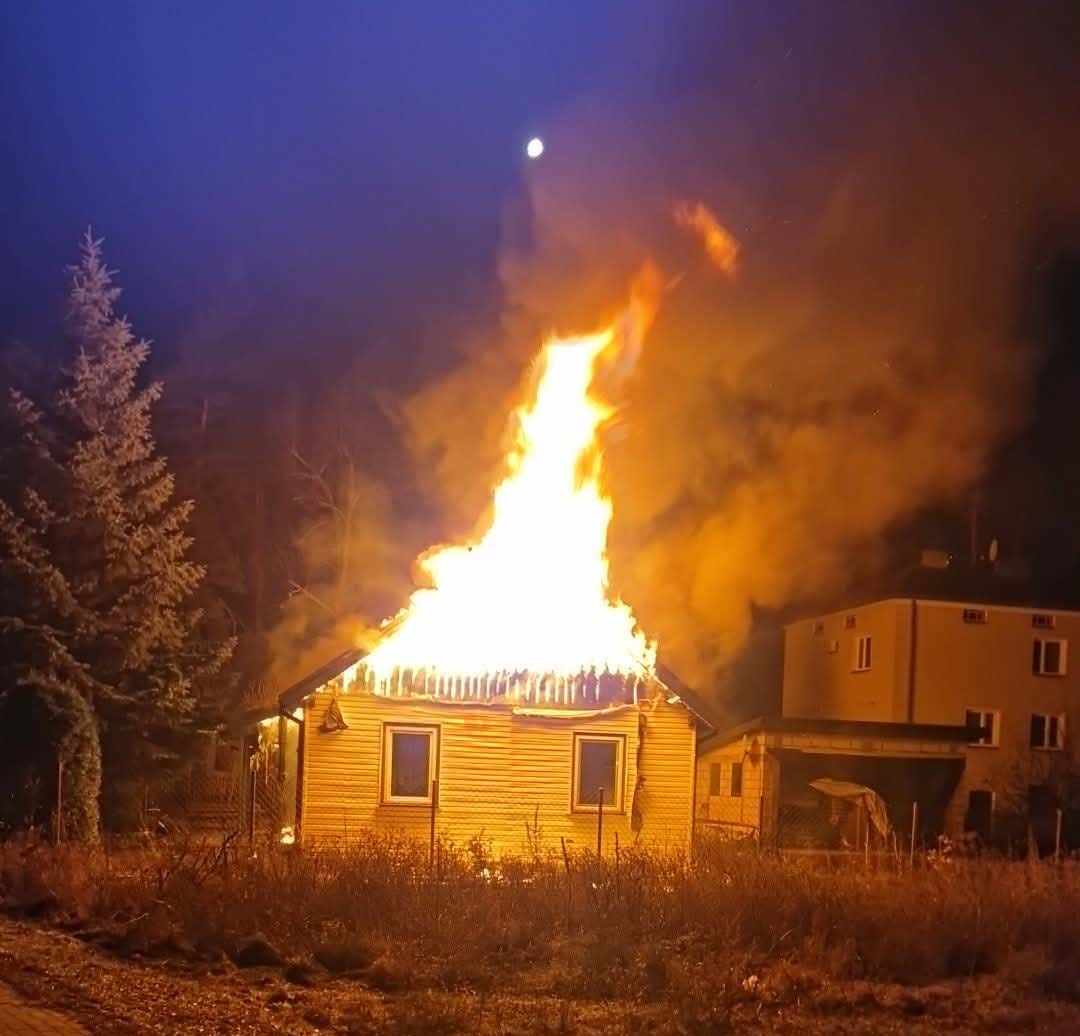 28 lutego 2026 roku, w miejscowości Szewnica, doszło do groźnego pożaru budynku mieszkalnego. Ogień bardzo szybko objął konstrukcję dachu i poddasze, a płomienie widoczne były z dużej odległości. Słup ognia i kłęby gęstego dymu rozświetliły nocne niebo, stwarzając realne zagrożenie dla mieszkańców oraz sąsiednich zabudowań.