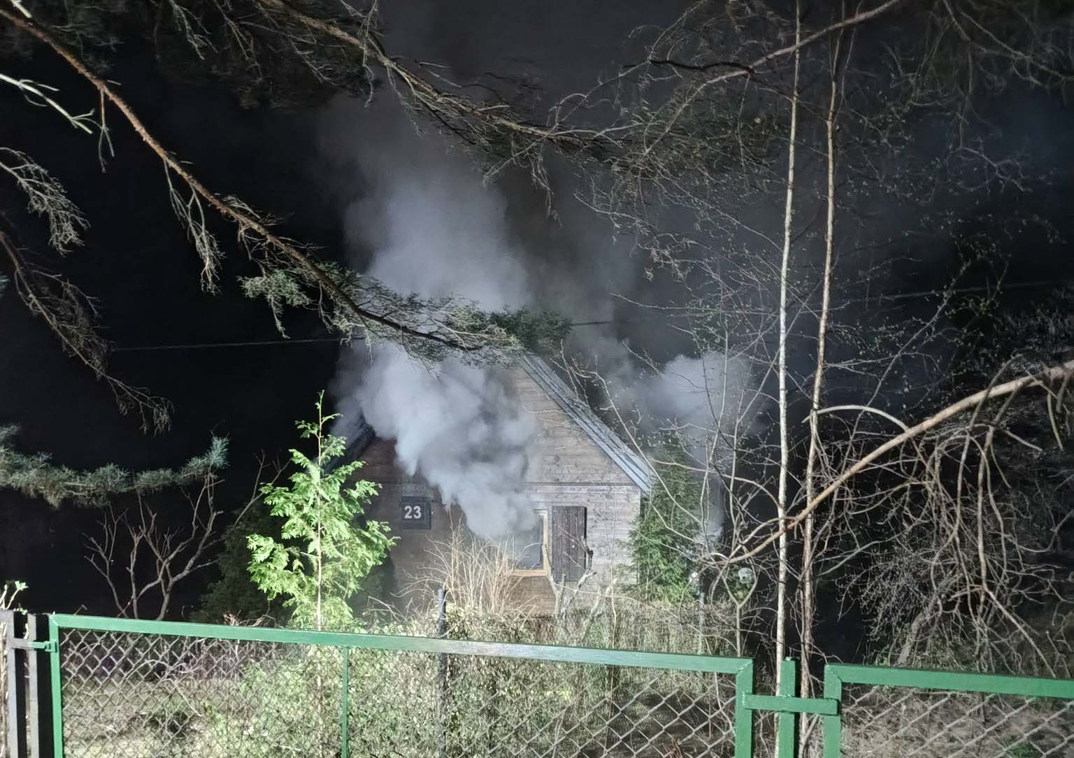 Zgłoszenie o pożarze wpłynęło do służb o godzinie 2:03. Na miejsce natychmiast skierowano zastępy straży pożarnej. Po przybyciu strażacy potwierdzili, że ogniem objęty jest drewniany dom letniskowy. Sytuacja była poważna – płomienie szybko rozprzestrzeniały się po łatwopalnej konstrukcji budynku.