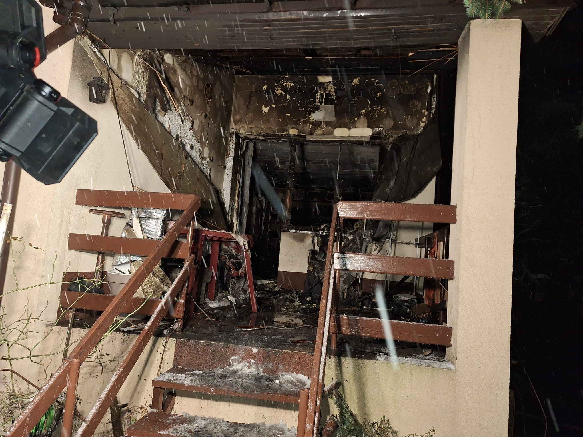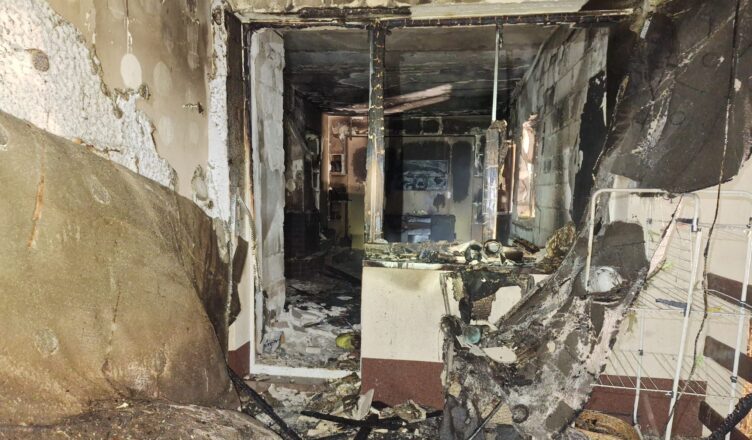 Po opanowaniu płomieni ratownicy przystąpili do dogaszania ukrytych ognisk pożaru oraz rozbiórki nadpalonych elementów wyposażenia i konstrukcji, które mogły stanowić zagrożenie ponownego zapłonu. Zniszczenia wewnątrz budynku są znaczne — ogień i wysoka temperatura doprowadziły do niemal całkowitego spalenia jednego z pomieszczeń.