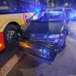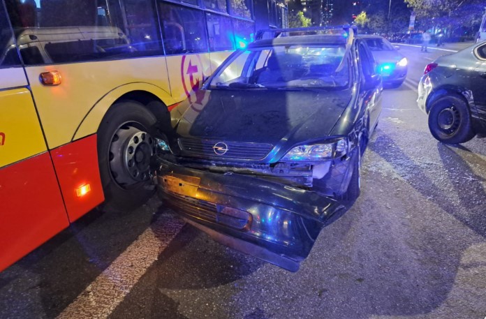 Do działań pościgowych włączyli się policjanci Wydziału Wywiadowczo-Patrolowego, którzy z uwagi na bezpieczeństwo pieszych znajdujących się na przejściu dla pieszych użyli nieoznakowanego radiowozu, jako środka przymusu bezpośredniego zajeżdżając drogę uciekającemu pojazdowi. Mimo to kierowca się nie zatrzymał. Staranował stojący radiowóz, a następnie uderzył w miejski autobus nocnej linii MZA, w którym poza kierowcą znajdowało się 2 pasażerów. Całe szczęście nikomu z pasażerów autobusu nic się nie stało, także żaden z policjantów nie został ranny. Ostatecznie po dynamicznej akcji policjantów 39-letni kierujący został zatrzymany. Badania trzeźwości potwierdziły, że prowadził w stanie nietrzeźwości. Miał w organizmie 1,4 promila alkoholu.