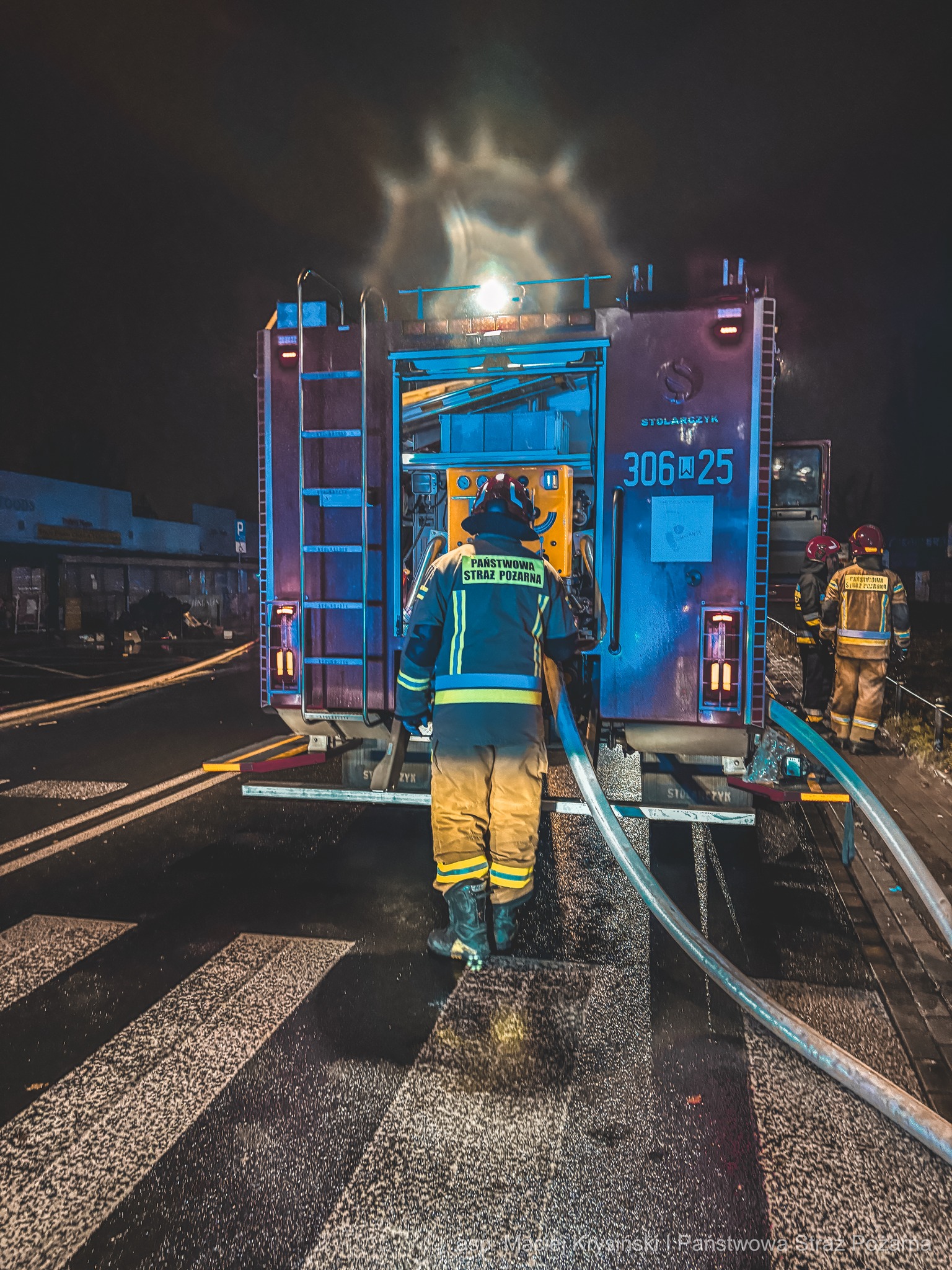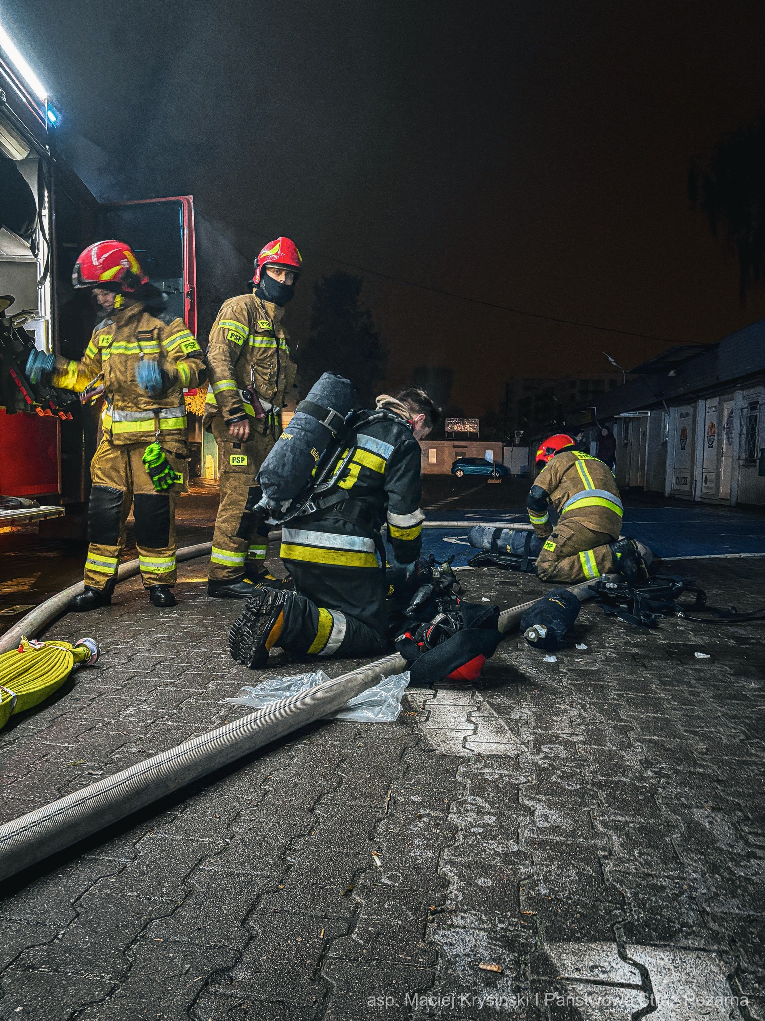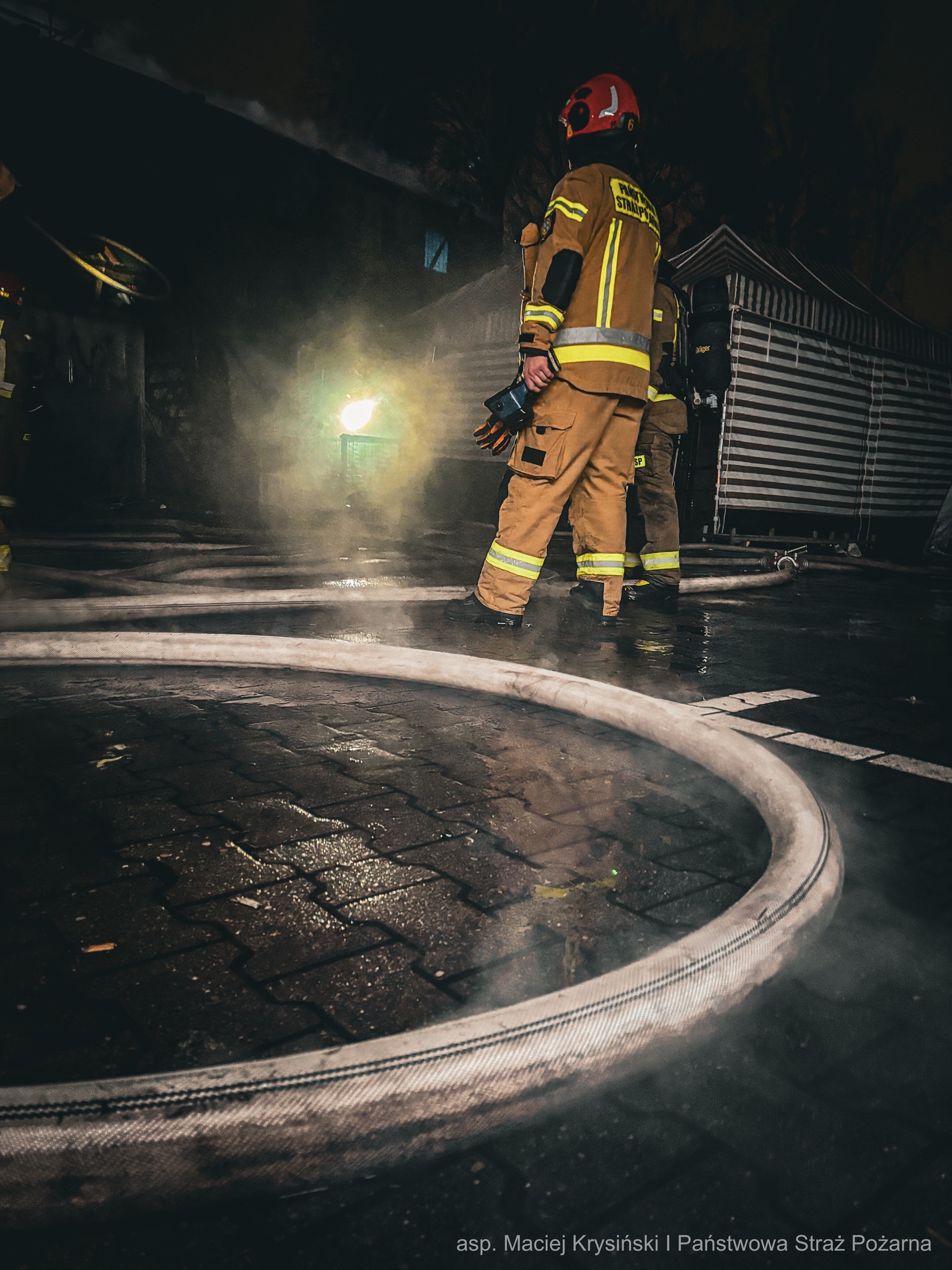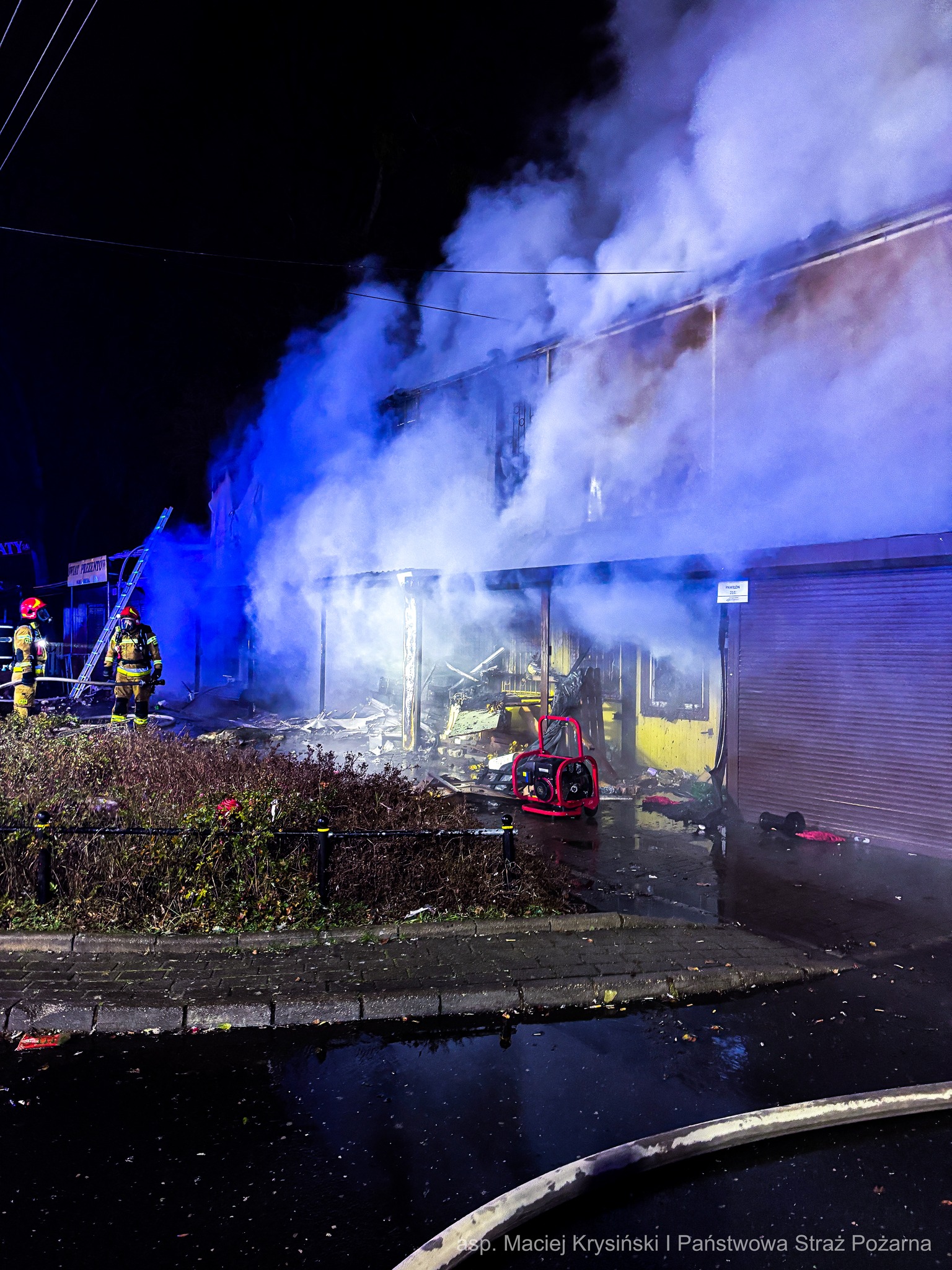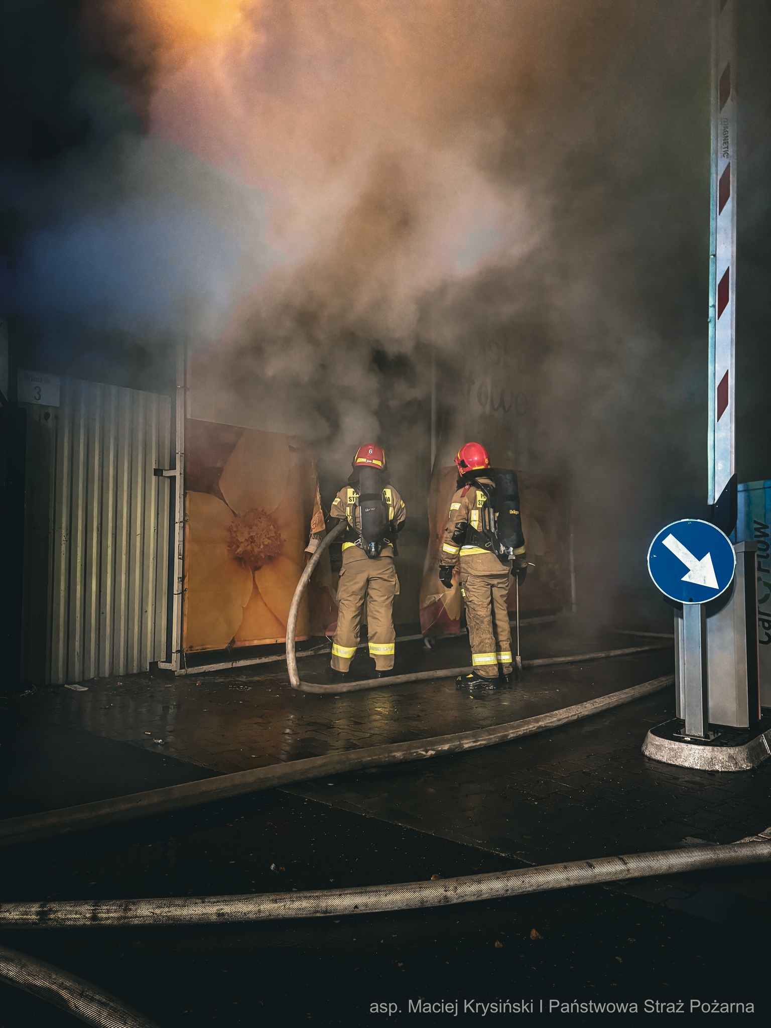 Nocny pożar kontenerów handlowych przy ul. Bakalarskiej w Warszawie