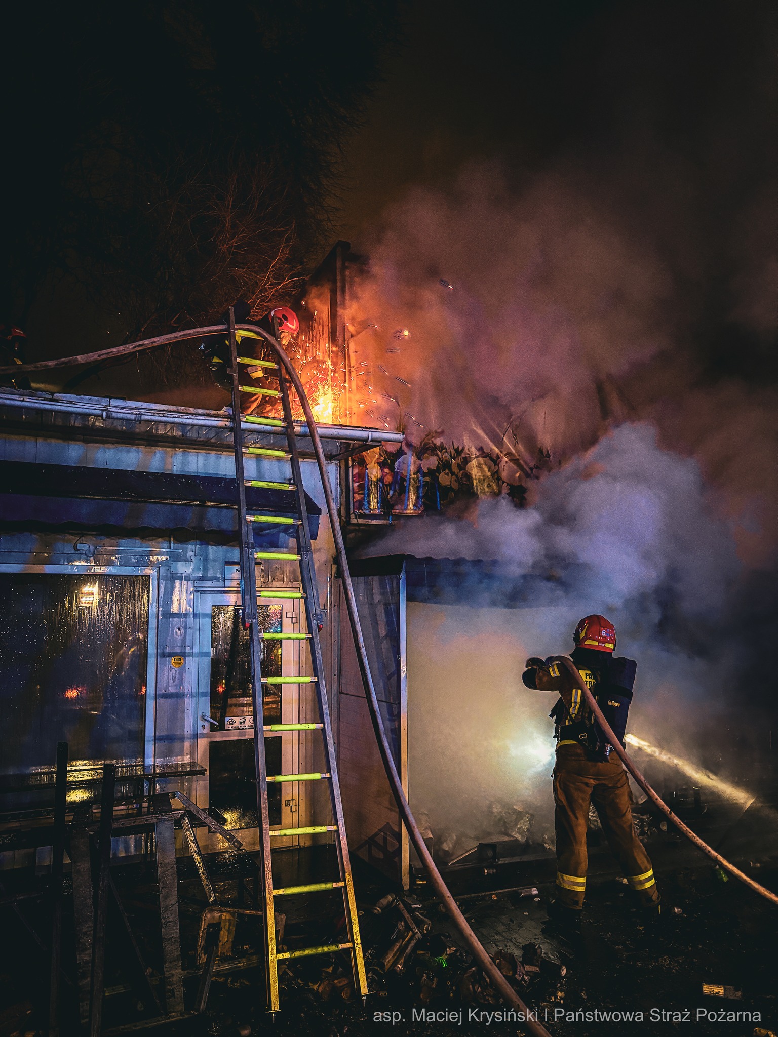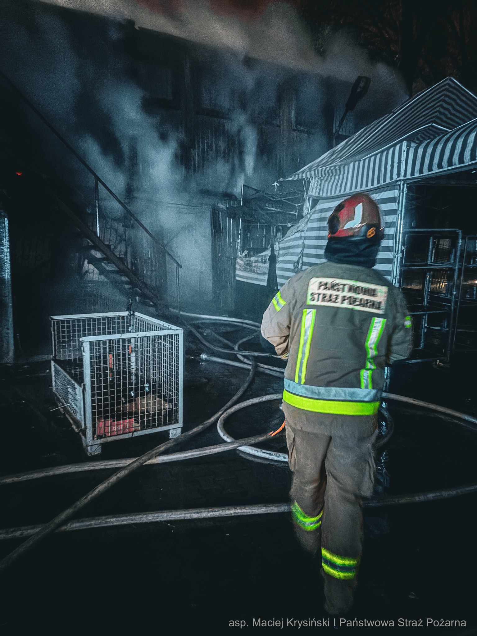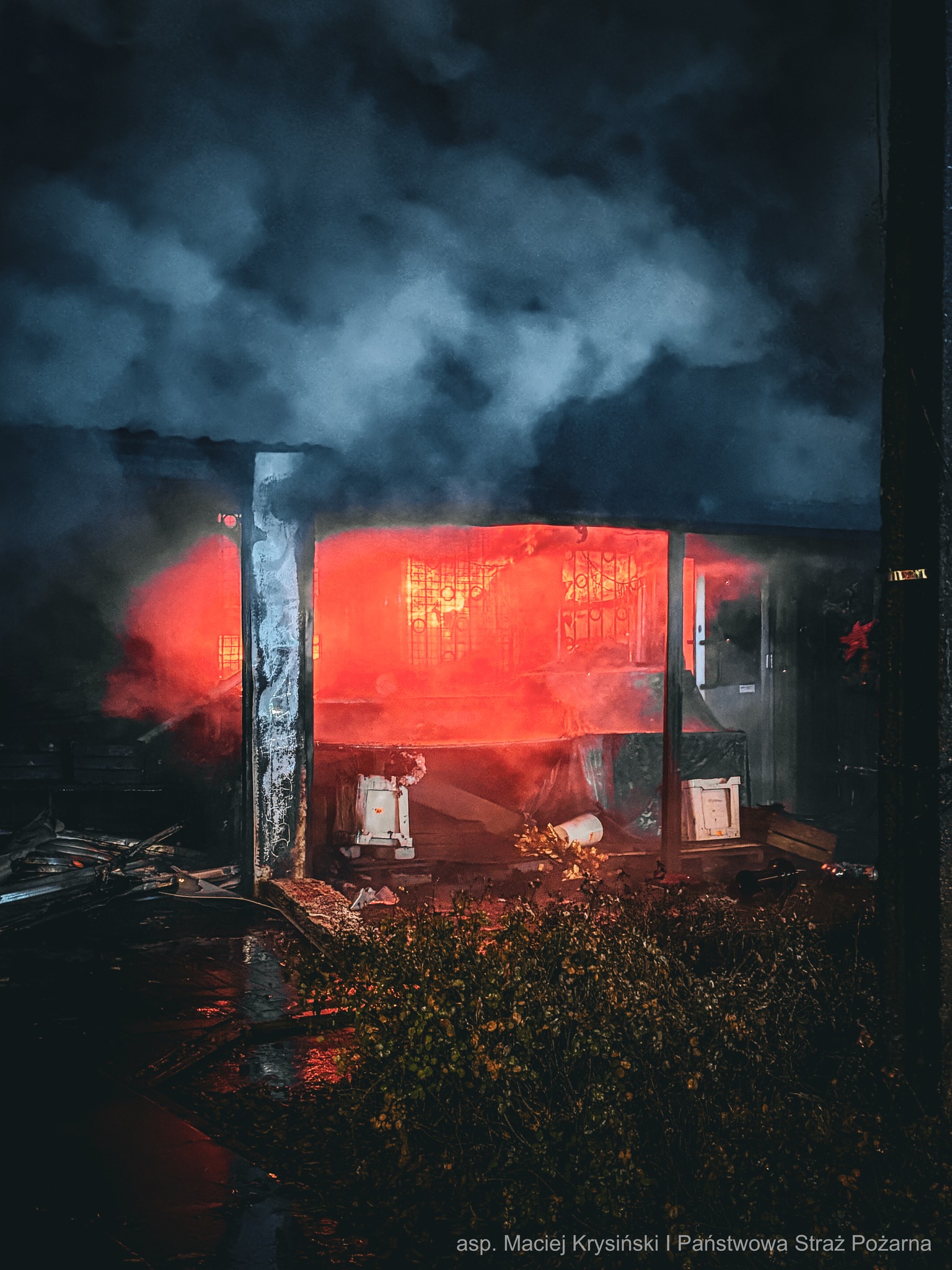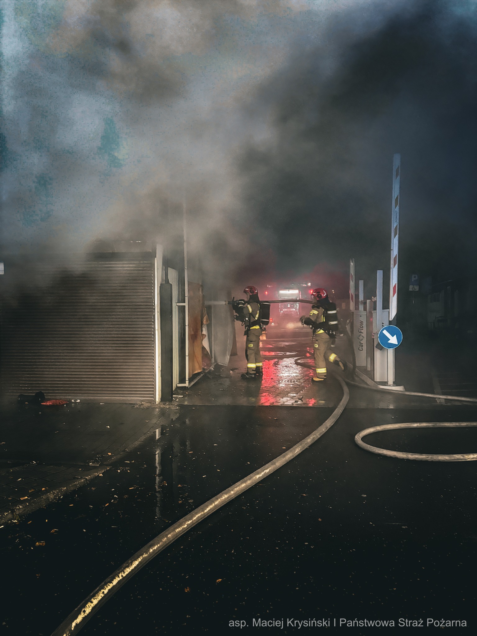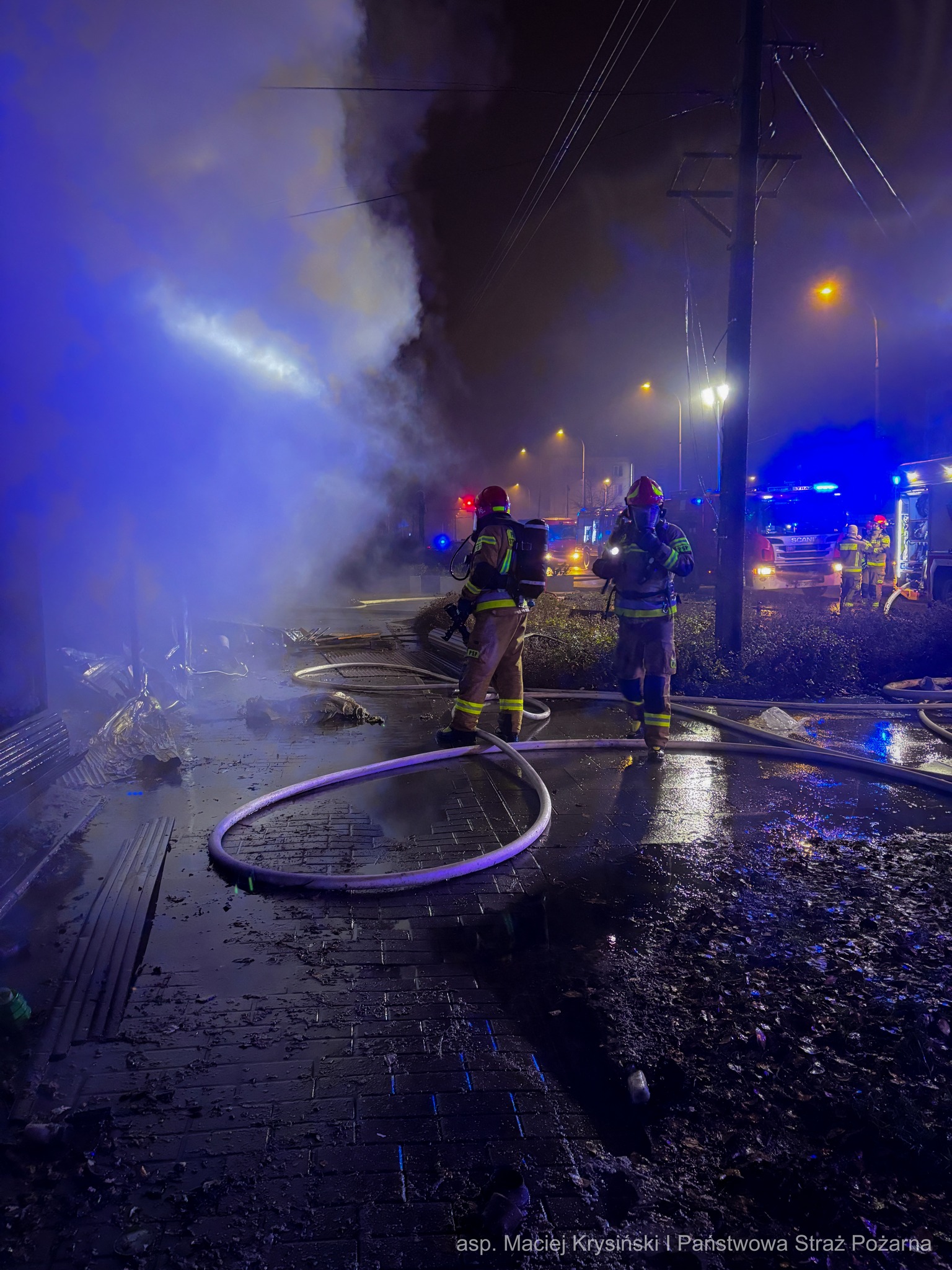 Nocny pożar kontenerów handlowych przy ul. Bakalarskiej w Warszawie