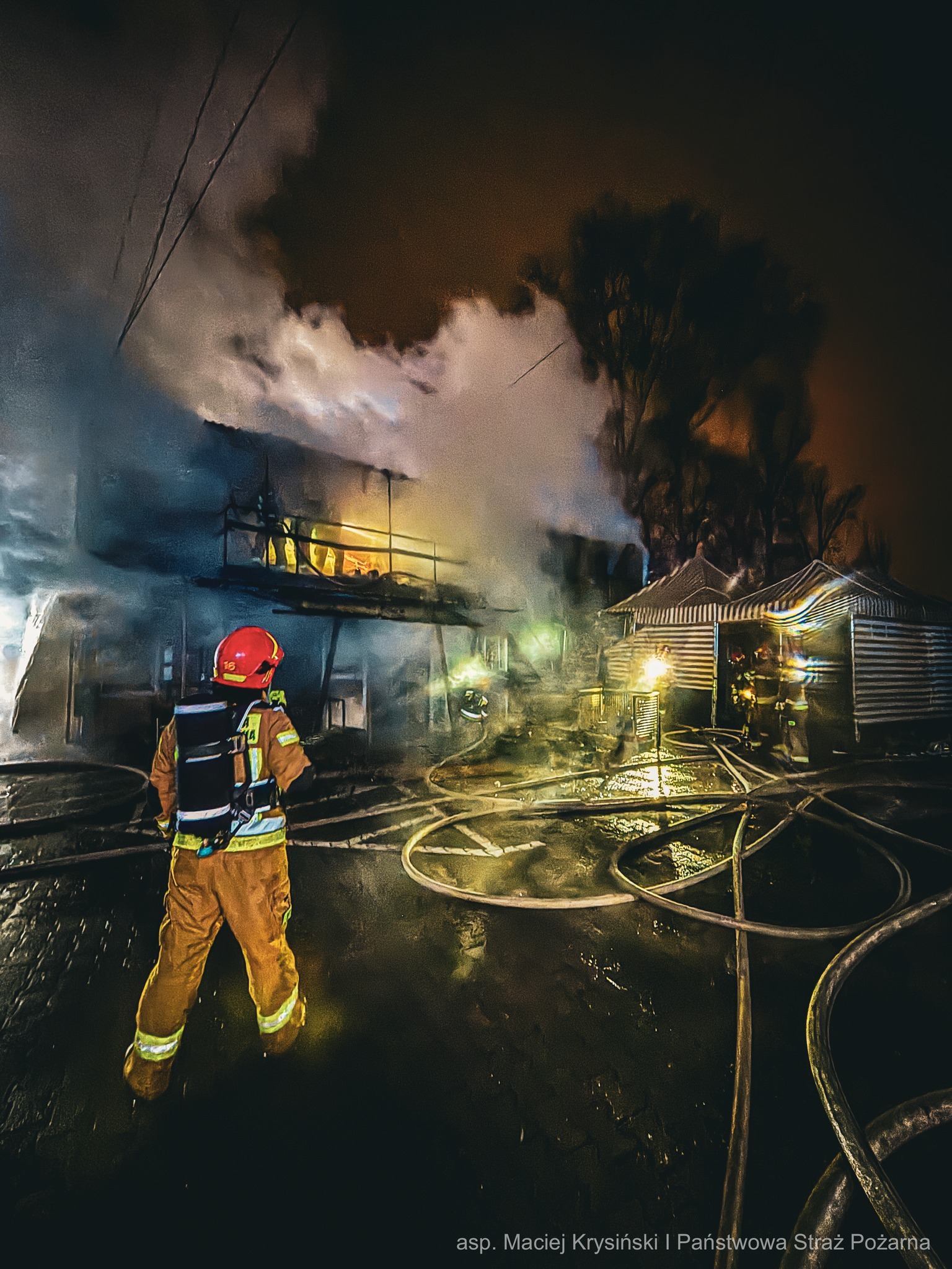 Działania trwały łącznie ponad 5 godzin i zakończyły się dziś o 6 rano. Brało w nich udział 12 zastępów (48 strażaków).