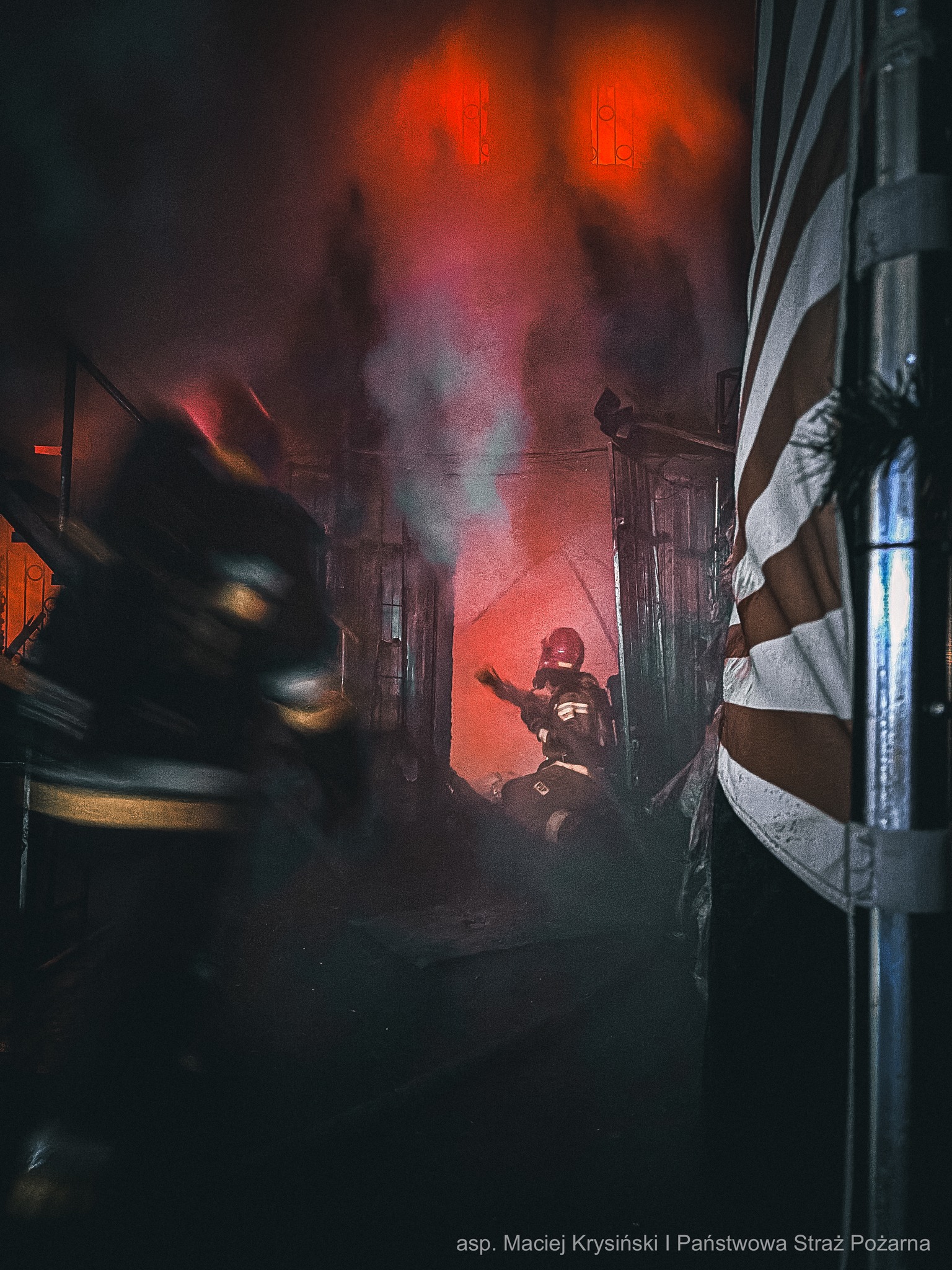 Pierwsze zastępy strażaków podały dwa prądy gaśnicze w natarciu, a Kierujący Działaniem Ratowniczym zadysponował dodatkowe siły i środki.