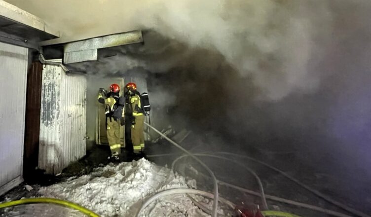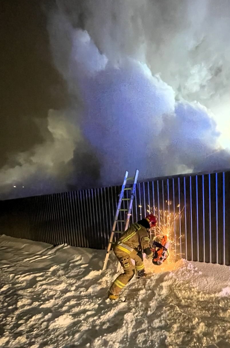 Warunki prowadzenia akcji były skrajnie trudne. Gęsty, gryzący dym ograniczał widoczność niemal do zera, a bardzo wysoka temperatura znacząco utrudniała pracę ratowników. Strażacy prowadzili intensywne natarcie na płonący obiekt, wykorzystując zarówno prądy wody, jak i pianę gaśniczą, aby skutecznie ograniczyć rozprzestrzenianie się ognia.