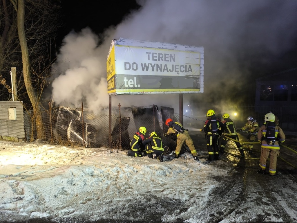 Nocny pożar przy DK92. Płomienie strawiły kontener biurowy w Paprotni