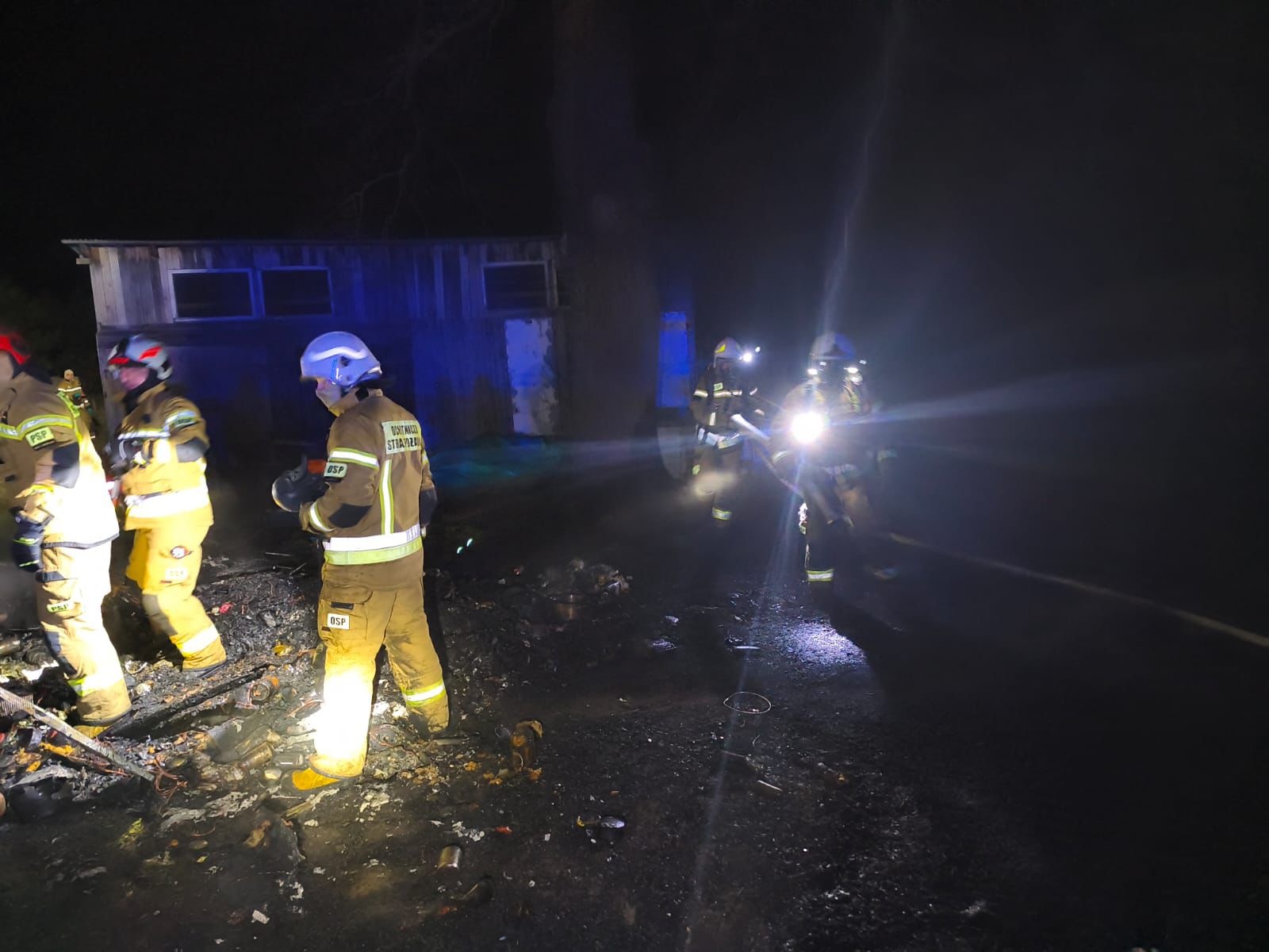 Zgłoszenie o pożarze wpłynęło do strażaków około 30 minut po północy. Na miejsce natychmiast skierowano trzy zastępy straży pożarnej. Jak ustalono, płomienie objęły przyczepę kempingową znajdującą się na posesji.