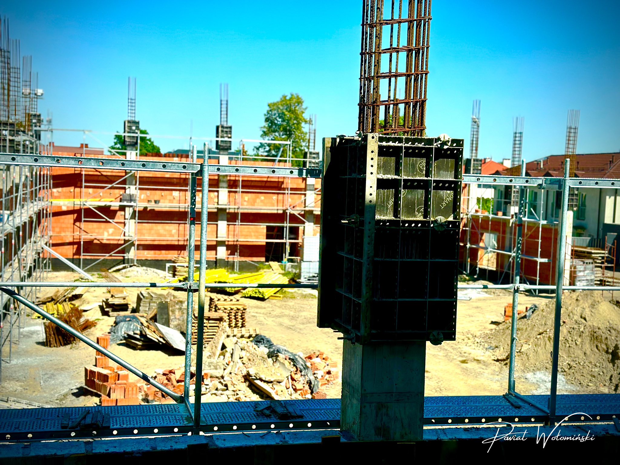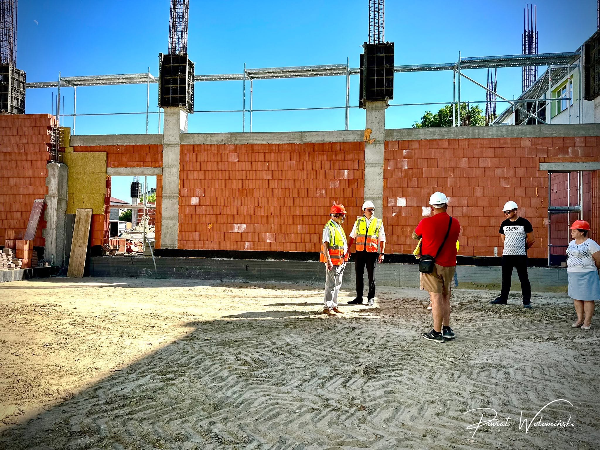 Pomimo wakacyjnego okresu i sezonu urlopowego, prace na terenie budowy hali sportowej przy Zespole Szkół w Wołominie przy ul. Legionów 85 nie zwalniają tempa. Obiekt, który w przyszłości stanie się nowoczesnym zapleczem sportowym dla młodzieży szkolnej, z każdym kolejnym dniem nabiera realnych kształtów.