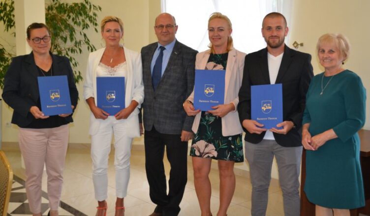 24 sierpnia 2021r. Zastępca Burmistrza Tłuszcza Waldemar Banaszek wręczył akty nadania stopnia awansu zawodowego nauczyciela mianowanego dla Pani Bożeny Muszyńskiej, Pani Izabeli Sibilskiej, Pani Anety Ciubak oraz Pana Bartłomieja Bogusiewicza.