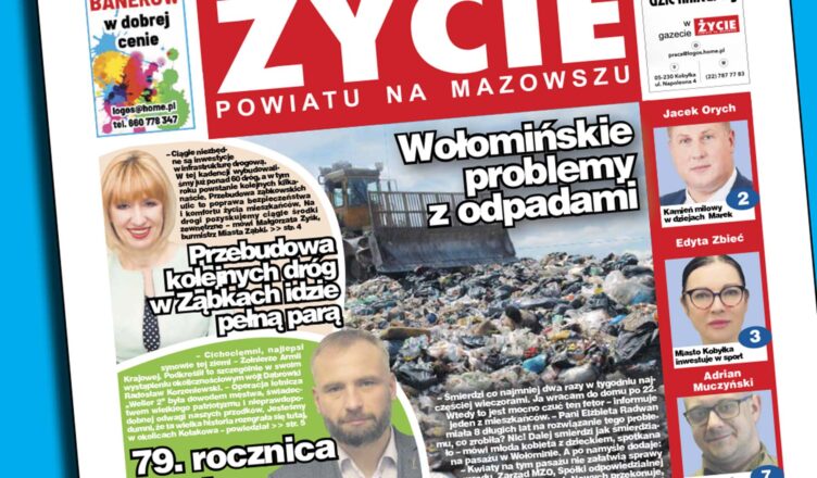 W najnowszym, papierowym wydaniu życia przeczytacie między innymi teksty o tym jak wyglądają „Wołomińskie problemy z odpadami”. Po raz kolejny poruszyliśmy również niezwykle bulwersujący i jak się okazuje aktualny temat dotyczący odpadów niebezpiecznych „Podejrzane znalezisko w Grabiach Starych”. Dowiecie się też jak wygląda marecki kamień milowy. Piszemy też o sukcesach kobyłkowskich siatkarek i siatkarzy oraz wołomińskich koszykarzy. Nie zapomnieliśmy też o licznych rocznicach i uroczystościach jak też poruszamy szereg innych, ważnych tematów społecznych. Zapraszamy do lektury.