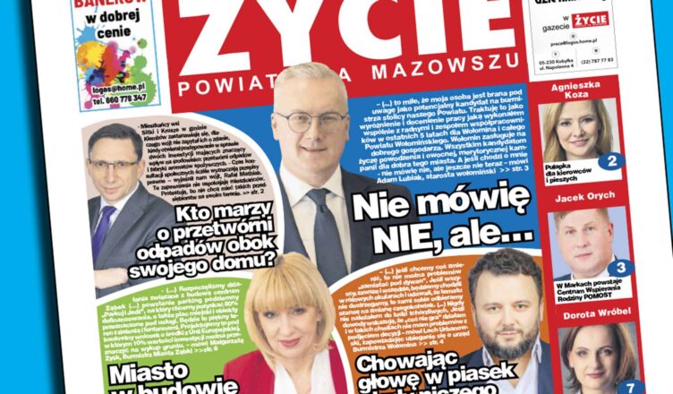 Wybory „za pasem” więc w bieżącym, papierowym, wydaniu „ŻYCIA” znajdziecie oczywiście kilka tekstów, które poświęciliśmy wyborom samorządowym, które odbędą się już za chwilę – 7 kwietnia. To ważne wydarzenie dla każdej lokalnej społeczności bowiem to jakiego wyboru dokonamy za miesiąc będzie zbierało żniwo przez kilka kolejnych lat. Wybierajmy więc świadomie. W bieżącym wydaniu możecie więc bliżej poznać plany osób z różnych gmin powiatu wołomińskiego, którzy po raz pierwszy lub kolejny chcą zawalczyć o funkcję burmistrza. „Chowając głowę w piasek nigdy niczego nie zmienimy” – to rozmowa z Lechem Urbanowskim, zapowiadającym swój start w wyborach na burmistrza Wołomina, którą przeprowadził Zbigniew Grabiński, naczelny „Życia”. Chociaż Lech Urbanowski samorządem interesuje się bardzo dawna to o funkcję burmistrza będzie się ubiegał po raz pierwszy.