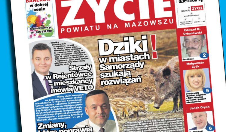 W najnowszym papierowym wydaniu „ŻYCIA” przeczytacie m.in. „Strzały w Rejentówce – mieszkańcy mówią VETO” – o problemach mieszkańców tego do niedawna cichego zakątka gminy Radzymin z Markiem Brodziakiem, przewodniczącym radzymińskiej rady rozmawiała redaktor Teresa Urbanowska. Ciekawie zapowiada się również wywiad z Arkadiuszem Werelichem, starostą wołomińskim, autorstwa tej samej autorki zatytułowany „Zmiany, które poprawią komfort życia mieszkańców”. W bieżącym wydaniu wracamy do tematyki dzików wędrujących coraz pewniej po ulicach naszych miejscowości, przekopują trawniki rabatki w poszukiwaniu smakołyków stołują się w osiedlowych altanach na odpady – zadomowiły się już na dobre w miejskiej przestrzeni. Wzrastająca ich liczba na terenach zurbanizowanych stała się poważnym wyzwaniem nie tylko dla gmin powiatu wołomińskiego. Temat dzików trafił na posiedzenia Zespołu Parlamentarnego ds. rozwoju aglomeracji podwarszawskiej działającego pod przewodnictwem posła Piotra Kandyby. W spotkaniu wraz z wójtami i burmistrzami z okolicznych gmin, uczestniczył Arkadiusz Werelich, starosta wołomiński. Zapraszamy do lektury.