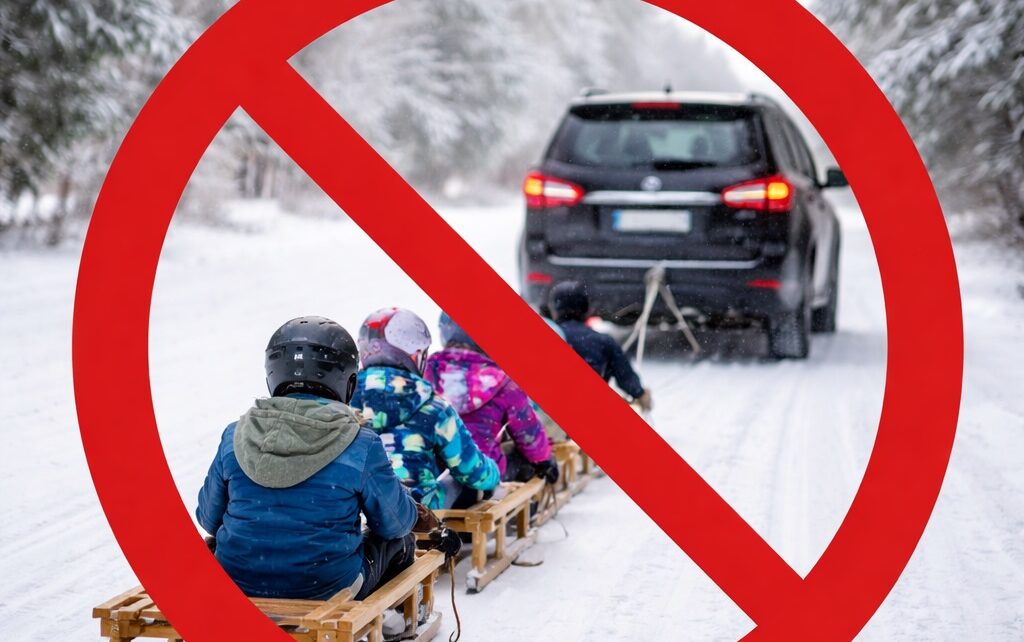 Z pozoru zimowa zabawa to śmiertelne zagrożenie – kulig za samochodem, to nie żart