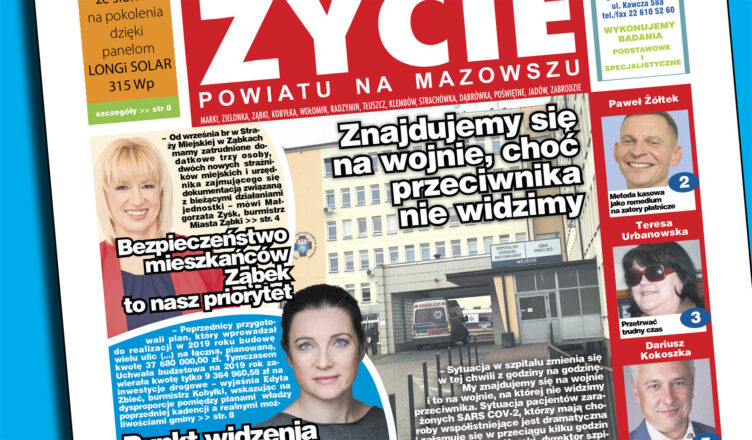 W najnowszym, papierowym wydaniu ?Życia Powiatu na Mazowszu? przeczytacie między innymi o tym, jaka jest sytuacja w wołomińskim szpitalu ? obszerna wypowiedź dyrektora Grzegorza Kryckiego podczas ostatniego posiedzenia Rady Powiatu. Znajdziecie tu również obszerną informację Edyty Zbieć, burmistrz Kobyłki, na temat budowy i remontów kobyłkowskich ulic a także o postępach prac na Węźle Kobyłka. To oczywiście tylko niektóre tematy z poruszanych na łamach papierowego wydania ?Życia?.