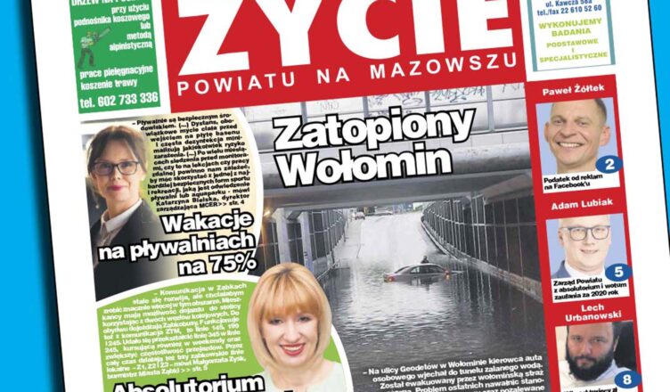 W najnowszym wydaniu ?Życia? znajdziecie m.in. informację o wymianie pieców w Kobyłce oraz o nowym obowiązku jaki spoczywa na właścicielach lokali – opowiada o tym Lech Urbanowski odpowiedzialny z ochronę środowiska w Kobyłce w tekście p.t.? Kilkaset tysięcy zł dotacji na wymianę kopciuchów w Kobyłce. Piszemy również o zalaniach i problemach z jakimi przyszło mierzyć się mieszkańcom powiatu wołomińskiego po ubiegłotygodniowych ulewach ? tej tematyce poświęcony jest tekst p.t. ?Zatopiony Wołomin? zaś Paweł Żółtek zwraca uwagę na? podatek od reklam na FB. To tylko niektóre z poruszonych w najnowszym, papierowym wydaniu ?Życia?, zagadnień. Zapraszamy do lektury.