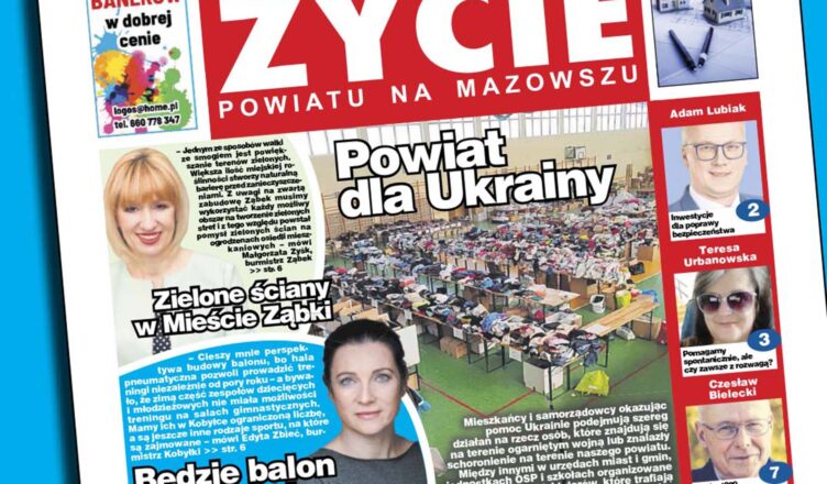Pomoc osobom uciekającym przed działaniami wojny w Ukrainie to od trzech tygodni najgłówniejszy temat doniesień medialnych. Nie zabrakło go również w najnowszym ?papierowym? wydaniu ?Życia?. – Pomagajmy spontanicznie ale rozważnie ? apeluje w swoim cyklicznym felietonie Teresa Urbanowska. W wydaniu nie zabrakło tez bieżących tematów. Piszemy o balonie na kobyłkowskim ?Wichrze? o inwestycjach powiatu w poprawę bezpieczeństwa czy o zielonych ścianach w Ząbkach. Zapraszamy również do lektury ciekawego wywiadu z Czesławem Bieleckim, projektantem Muzeum Bitwy Warszawskiej w Ossowie.