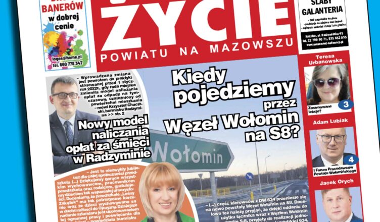 W najnowszym wydaniu ?Życia? przeczytacie o tym kiedy pojedziemy przez ?Węzeł Wołomin? na S8? – z takim pytaniem redaktor Teresa Urbanowska zwróciła się do Igora Sulicha, radnego powiatowego z Wołomina. Rozmowa dotyczy powodów przedłużającego się terminu oddania do użytku ?Węzła Wołomin? na S8, ale też korzyści wynikających z oddania Węzła do użytku a także rozbudowy drogi wojewódzkiej 634. Zapytaliśmy też trójkę włodarzy z powiatu wołomińskiego o to jaki wpływ na gminne inwestycje ma wojna w Ukrainie. Próbujemy znaleźć odpowiedź na pytanie o co chodzi w sprawie bocznicy kolejowej w Zielonce. Przechodząca pomiędzy blokami przy ul. Przemysłowej a Gliniankami, bocznica stanowi bowiem temat, który od kilku miesięcy budzi wiele kontrowersji i obaw zarówno wśród społeczności, jak i samorządu Zielonki. Nie zapominamy również o tematach ocierających się o kulturę. W tym tygodniu Pracownia Artystycznych Wyzwań przypomina o zbliżającym się VIII ogólnopolskim Plenerze Malarsko-Fotograficznym i zaprasza podobnie jak w latach ubiegłych do wspólnego malowania w plenerze w tym roku pod hasłem OKOło romantyzmu