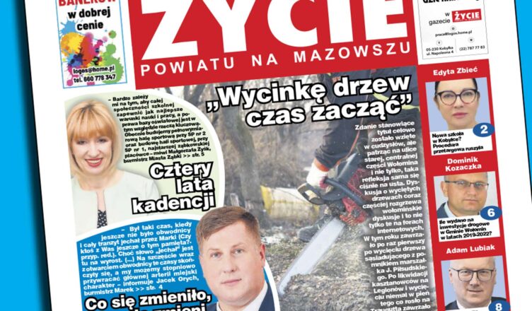 Co znajdziecie w najnowszym, Papierowym wydaniu Życia? Otóż, przeczytacie między innymi: „Wycinkę drzew czas zacząć” – to zdanie stanowiące tytuł jednego z artykułów celowo zostało wzięte w cudzysłów, ale patrząc na ulice starej, centralnej części Wołomina i nie tylko, taka refleksja sama się ciśnie na usta. Dyskusja o wyciętych drzewach coraz częściej rozgrzewa wołomińskie dyskusje i to nie tylko te na forach internetowych. W tym roku zawrzało po raz pierwszy po wycięciu drzewa sąsiadującego z pomnikiem marszałka J. Piłsudskiego. Po likwidacji kasztanowców na Legionów i wycięciu niemal w pień tego co rosło na Traugutta zawrzało już na dobre.