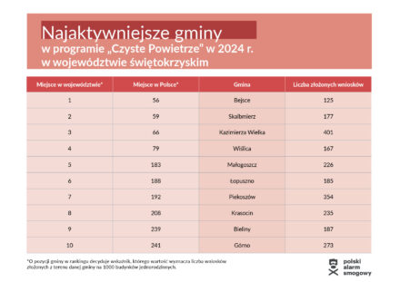Nowy ranking gmin w Programie Czyste Powietrze – liderami gminy Mazowsza i północnej Polski