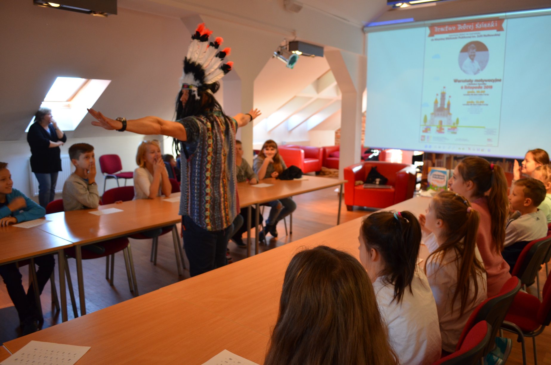 6 listopada w ramach projektu ?Bractwo dobrej książki? w Miejskiej Bibliotece Publicznej im. Zofii Nałkowskiej w Wołominie odbyły się na warsztaty motywacyjne dla dzieci i młodzieży.które prowadził Michał Zawadka
