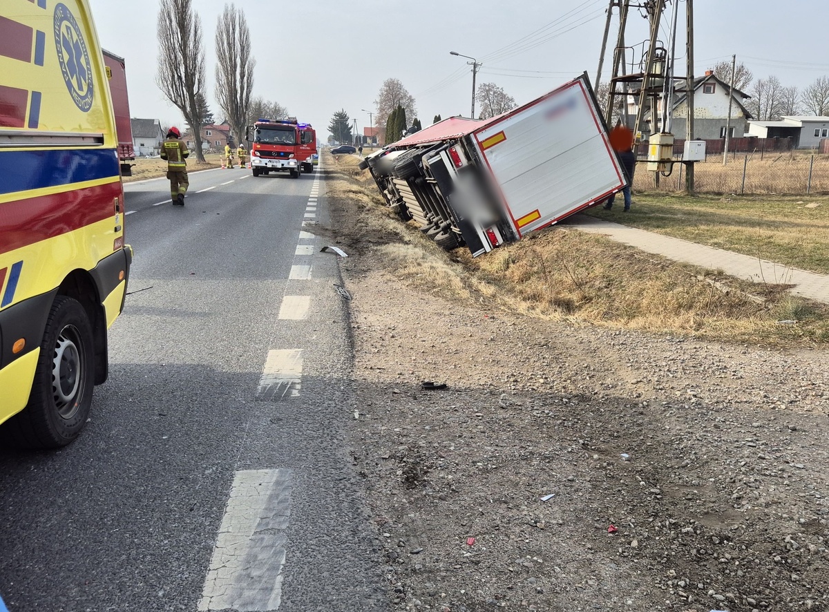 Szybka reakcja kierowcy samochodu ciężarowego pozwoliła uniknąć zderzenia czołowego z osobówką. Sam jednak wpadł do rowu i wywrócił pojazd na bok. We wczorajszym zdarzeniu na drodze K-62 brało udział, aż cztery samochody. Jedna osoba trafiła do szpitala. Droga w tym miejscu była zablokowana przez kilka godzin.