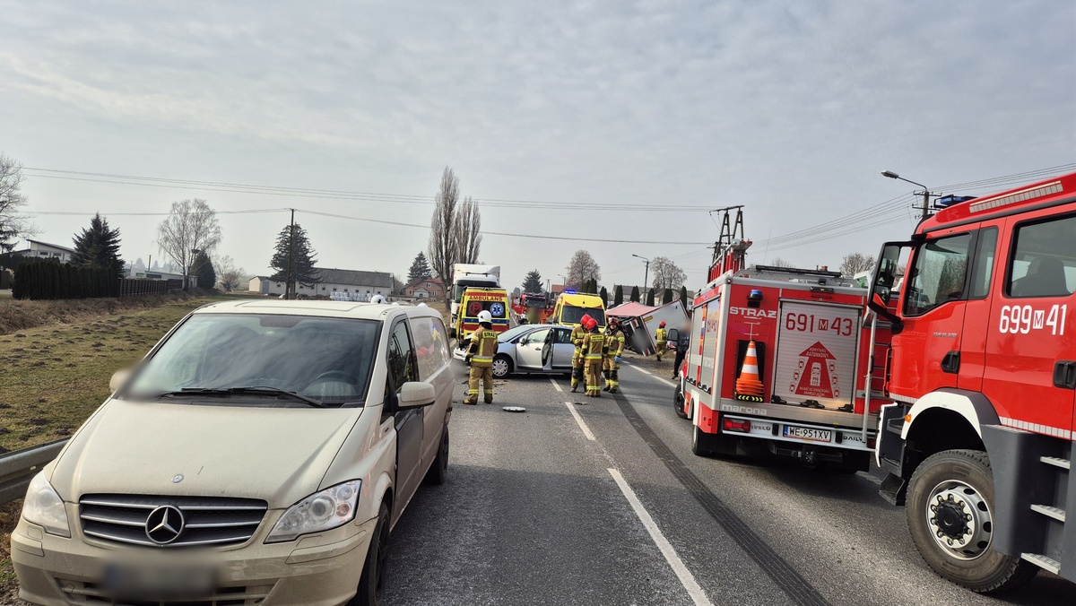 Wczoraj (24.02) na drodze K-62 w Somiance doszło do poważnego zdarzenia drogowego z udziałem 4 aut. Jak wstępnie ustalili pracujący na miejscu policjanci z wyszkowskiej drogówki, kierująca citroenem 59-latka, wykonując manewr omijania, uderzyła w tył mercedesa, za kierownicą którego siedział 37-latek, który stał na tym samym pasie ruchu za osobowym nissanem, oczekującym na możliwość wykonania skrętu w lewo. Następnie 59-latka zjechała na przeciwległy pas ruchu, wprost przed nadjeżdżający pojazd ciężarowy. Kierujący Dafem 61-latek, chcąc uniknąć zderzenia czołowego z osobówką, zjechał do przydrożnego rowu i doprowadził do wywrócenia się pojazdu. W zdarzeniu brał udział również kierujący nissanem 73-latek, w którego uderzył mercedes, przepchnięty w wyniku zderzenia z citroenem.