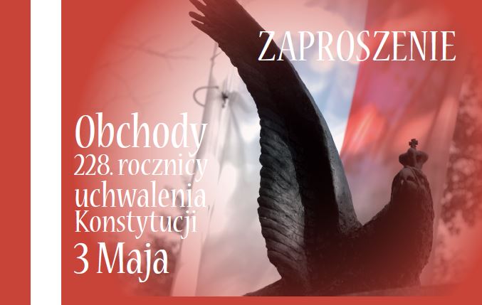 Burmistrz Miasta Zielonka oraz Ośrodek Kultury i Sportu w Zielonce mają zaszczyt zaprosić na uroczystość upamiętniającą 228. rocznicę uchwalenia Konstytucji, która odbędzie się w Zielonce 3 maja 2019 r.