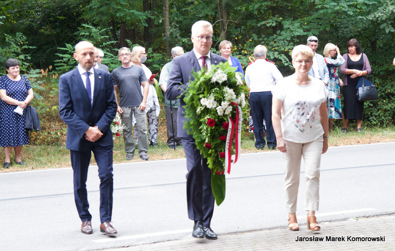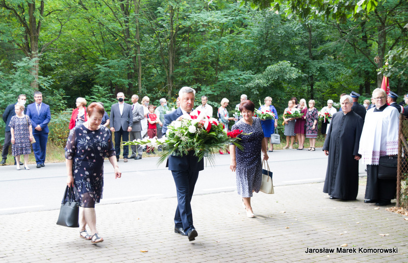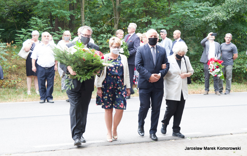 Kolejnym punktem uroczystości było przejście pod pamiątkową kapliczkę i złożenie kwiatów przez poseł Bożenę Żelazowską oraz delegacje: władz Gminy Jadów, Starostwa Powiatowego, szkół z Urli, Szewnicy i Myszadeł, mieszkańców Strachowa, przedstawicieli Mazowieckiej Wspólnoty Samorządowej, Prawa i Sprawiedliwości oraz Dyrekcję Muzeum w Liwie.