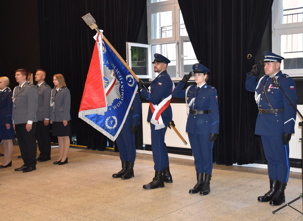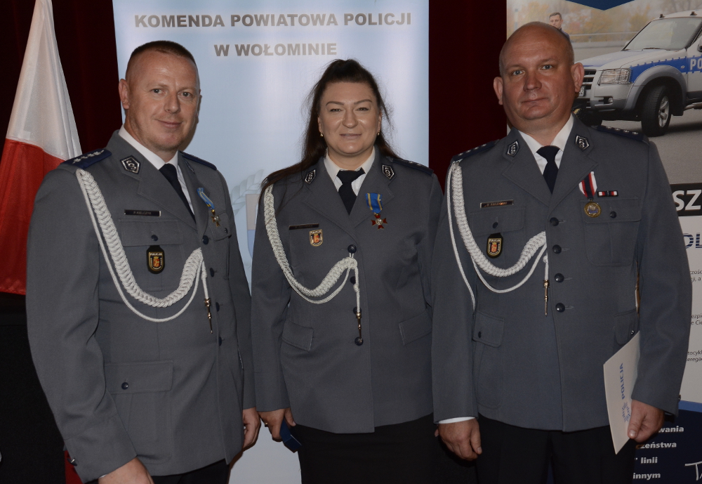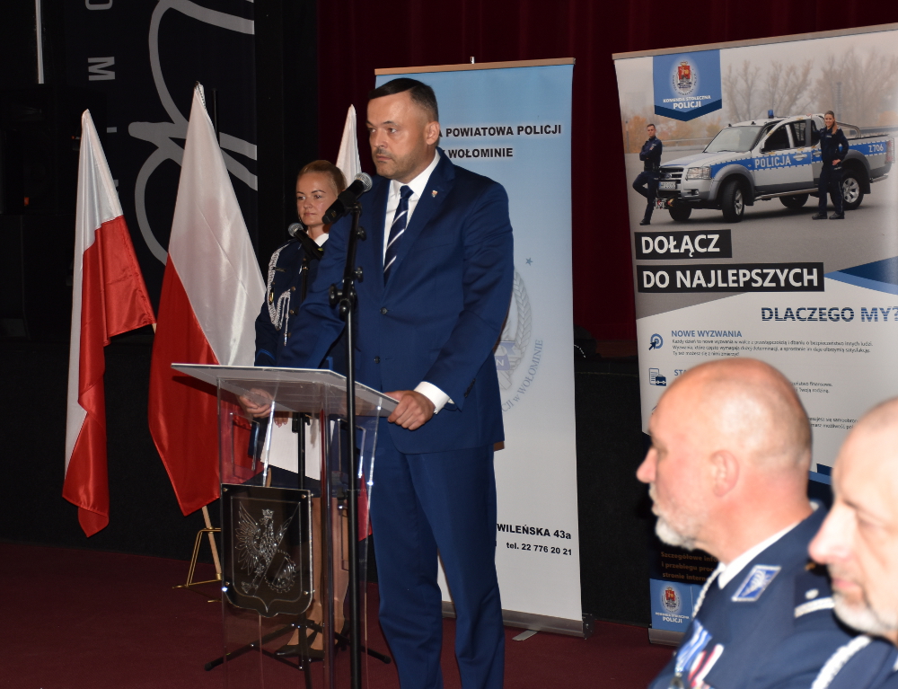 Przybyłych na uroczystość gości powitał p. o. Komendanta Powiatowego Policji Wołominie insp. Mariusz Kaszowicz. W swoim przemówieniu podziękował policjantom i pracownikom cywilnym za trud wkładany w codzienną służbę, która przekłada się na bezpieczeństwo mieszkańców powiatu wołomińskiego. Rodzinom funkcjonariuszy podziękował za wyrozumiałość i wsparcie najbliższych każdego dnia. Komendant słowa uznania skierował również do władz samorządowych, które z dużym zaangażowaniem współpracują z Policją.