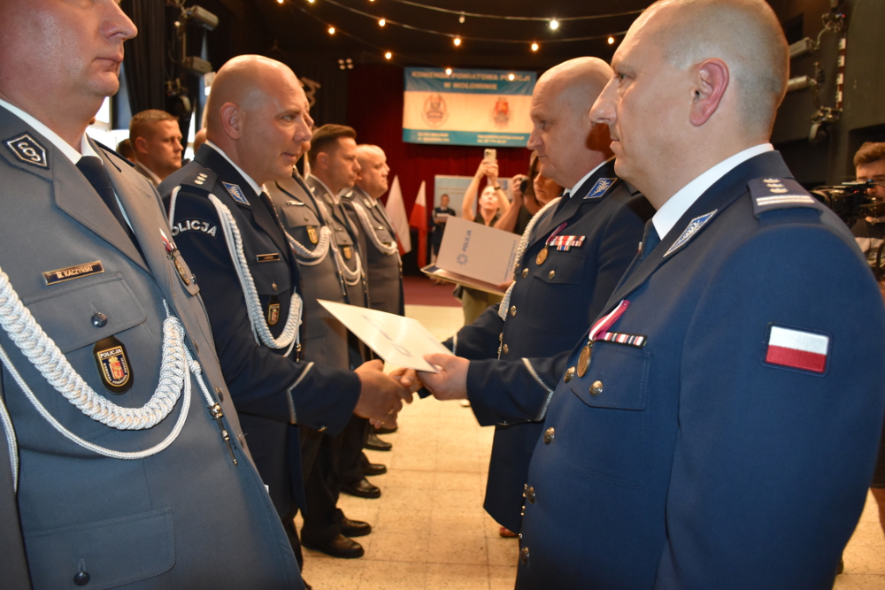 Podczas uroczystości wręczono akty mianowania na wyższe stopnie 86 policjantom. Za szczególne zaangażowanie oraz budowanie pozytywnego wizerunku formacji p. o. Komendanta Powiatowego Policji w Wołominie insp. Mariusz Kaszowicz nagrodami wyróżnił 78 funkcjonariuszy oraz 53 pracowników cywilnych. Nie zabrakło również wsparcia ze strony samorządów naszego powiatu, które przekazały środki finansowe za szczególne osiągnięcia w służbie dla wyróżniających się policjantów.