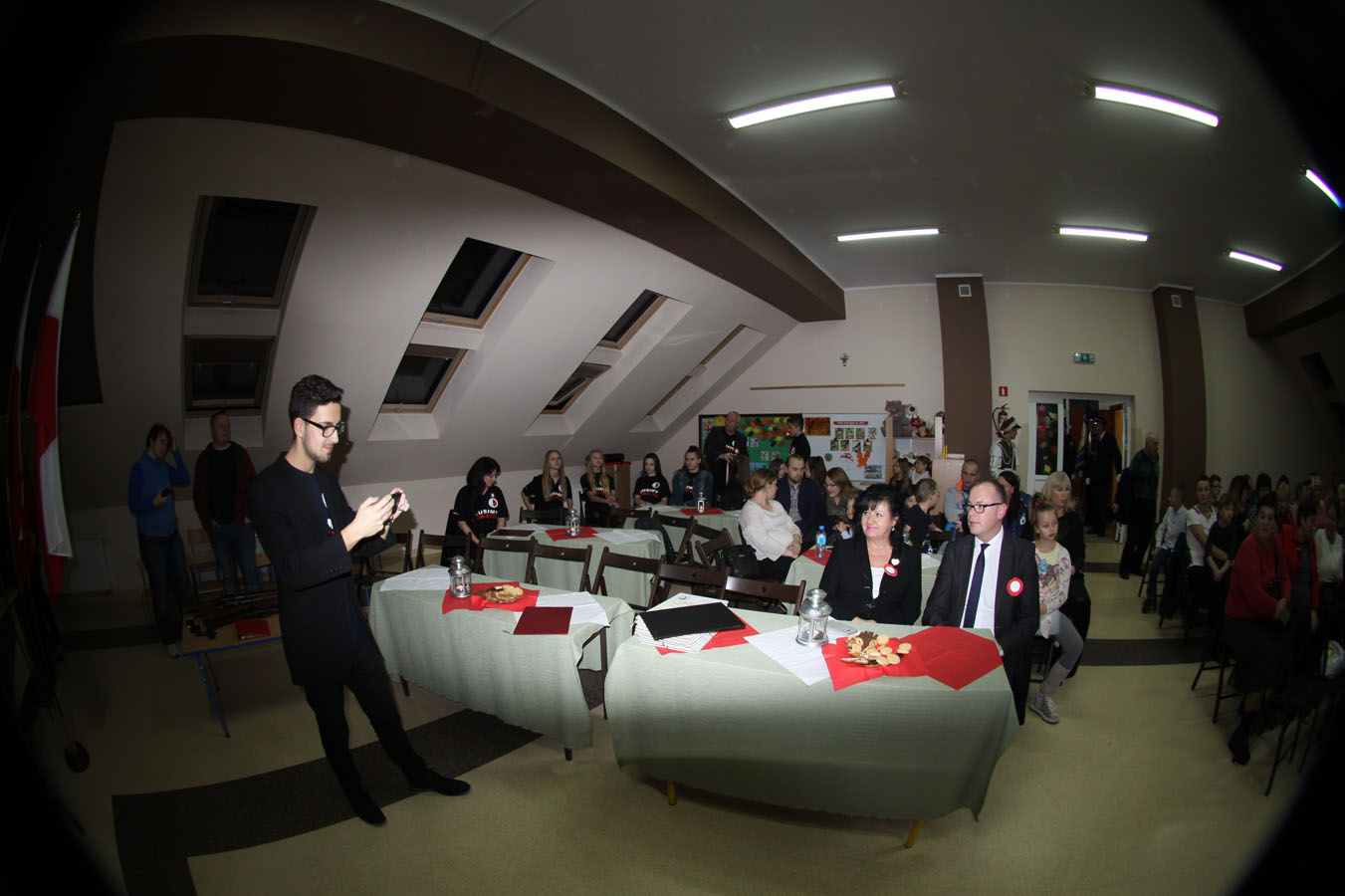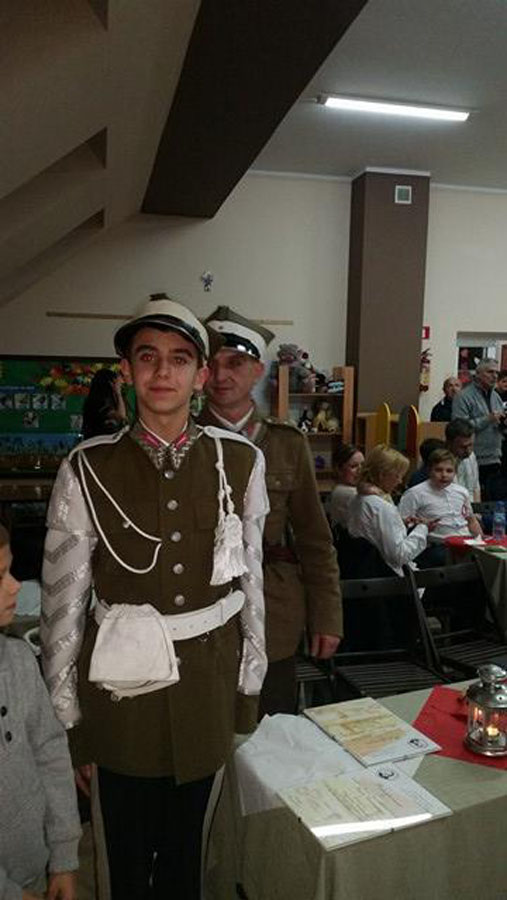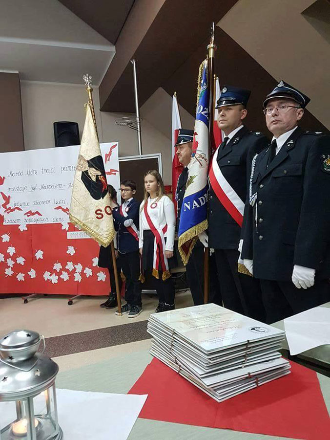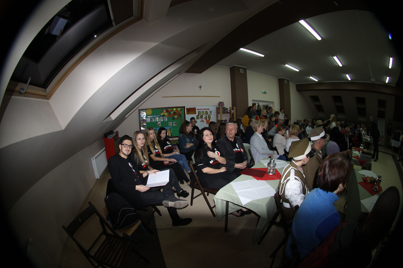 W piątek 18 listopada w Szkole Podstawowej im. Prymasa Tysiąclecia w Nadmie spotkały się różne środowiska: dzieci, młodzież, rodzice, dziadkowie, nauczyciele, ksiądz proboszcz, przedstawiciele władz samorządowych i zaproszeni goście wszyscy razem i wszystko po to, by ?Ocalić od zapomnienia? – ważne daty, ludzi, przedmioty? W cudownej rodzinnej atmosferze z piękną scenografią, przy stolikach z latarenkami z kawą i ciastkiem mogliśmy słuchać i oglądać przedstawienia przygotowanego przez uczniów tej szkoły. Dziadek i wnuczek ze scenariusza przybliżał ważne fakty z historii Polski. Nie kryto wzruszenia, kiedy najmłodsi tej szkoły śpiewali ważne patriotyczne pieśni. Pan dyrektor Krzysztof Czuba był niezwykle dumny ze swoich uczniów, którym podziękował za dostarczenie tak wielu wzruszeń, za chwile historii i za to, że pamiętają? Po przedstawieniu uczniów, które odbywało się przy asyście sztandarów szkoły i Ochotniczej Straży Pożarnej z Nadmy, nadszedł czas na kawał historii, którą przedstawili zaproszeni goście. Paweł i Iwona Zaniewscy z Kobyłki właściciele pierwszego prywatnego muzeum w powiecie wołomińskim Muzeum Oręża i Techniki Użytkowej przedstawili część swojej kolekcji. Pan Paweł opowiadał o swojej pasji a dzieci słuchały z ogromnym zainteresowaniem, oglądania nie było końca a zdjęcia z eksponatami robiły nie tylko dzieci. Mogliśmy dowiedzieć się, że muzeum jest w posiadaniu nawet kolekcji fajek, a nawet jedynej na świecie fajki ?Globus?. Uczniowie zaprosili pana Pawła na kolejną lekcję historii w ich szkole. Kolejna lekcja historii z Klubu Armii Krajowej z Radzymina. Pan Władysław Kolatorski i pani Magdalena Krysiak z młodzieżą z Gimnazjum Nr 1 im. mjr Stefana Waltera z Radzymina w bardzo ciekawy sposób opowiedzieli o działalności klubu i o tym jak ważne jest by pamiętać, by ocalić od zapomnienia i przekazywać tę pamięć młodym pokoleniom. Kolejnymi gośćmi byli pan Sławomir i Krystian Gajc – ojciec i syn ze Stowarzyszenia im. 2 Szwadronu 11 Pułku Ułanów Legionowych, piękne mundury, w których przybyli oczarowały wszystkich zebranych a taka pasja przekazana z ojca na syna jest ogromnym aktem pamięci i patriotyzmu. Kolejnym gościem, który odkrył kilka kart z historii był pan Marek Rogusz z Fundacji Historycznej Lotnictwa Polskiego i jego prezentacja m.in. pokazująca zdjęcia zestrzelonego samolotu w czasie II wojny światowej właśnie w Nadmie, zaciekawiły wszystkich tych najmłodszych i najstarszych. I jeszcze ciepłe słowa przedstawicieli władz i gości. A na koniec zostało już tylko wspólne śpiewanie pięknych patriotycznych pieśni . To był wyjątkowy niezapomniany wieczór. „Ocalić od zapomnienia?.? tak brzmiało hasło przewodnie tej rocznej Wieczornicy. My z pewnością będziemy pamiętać.