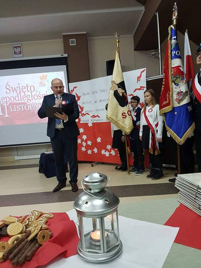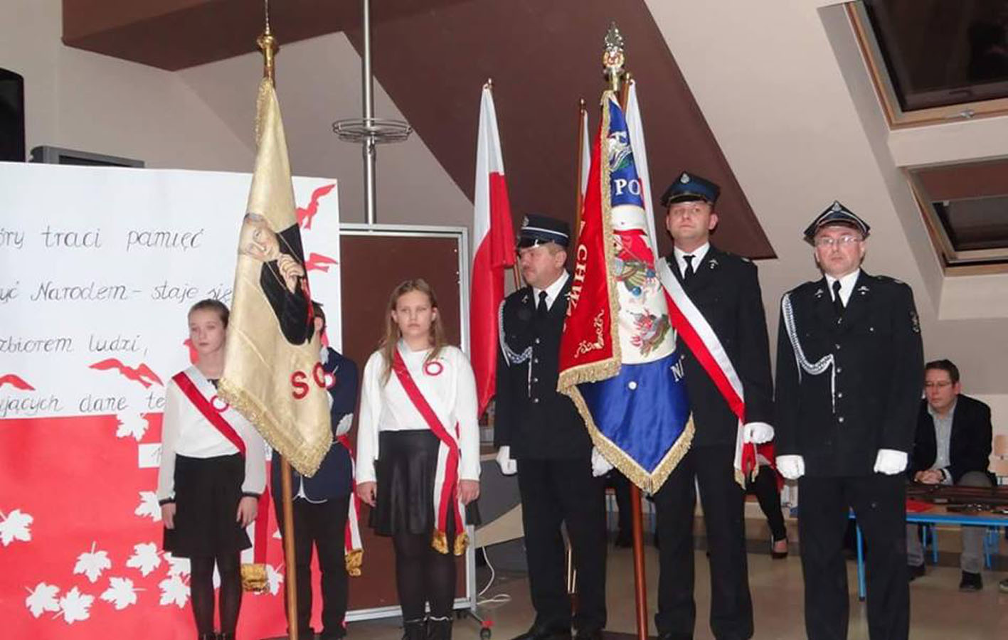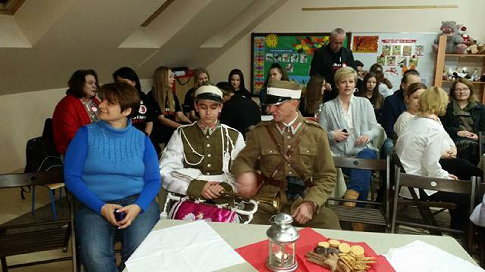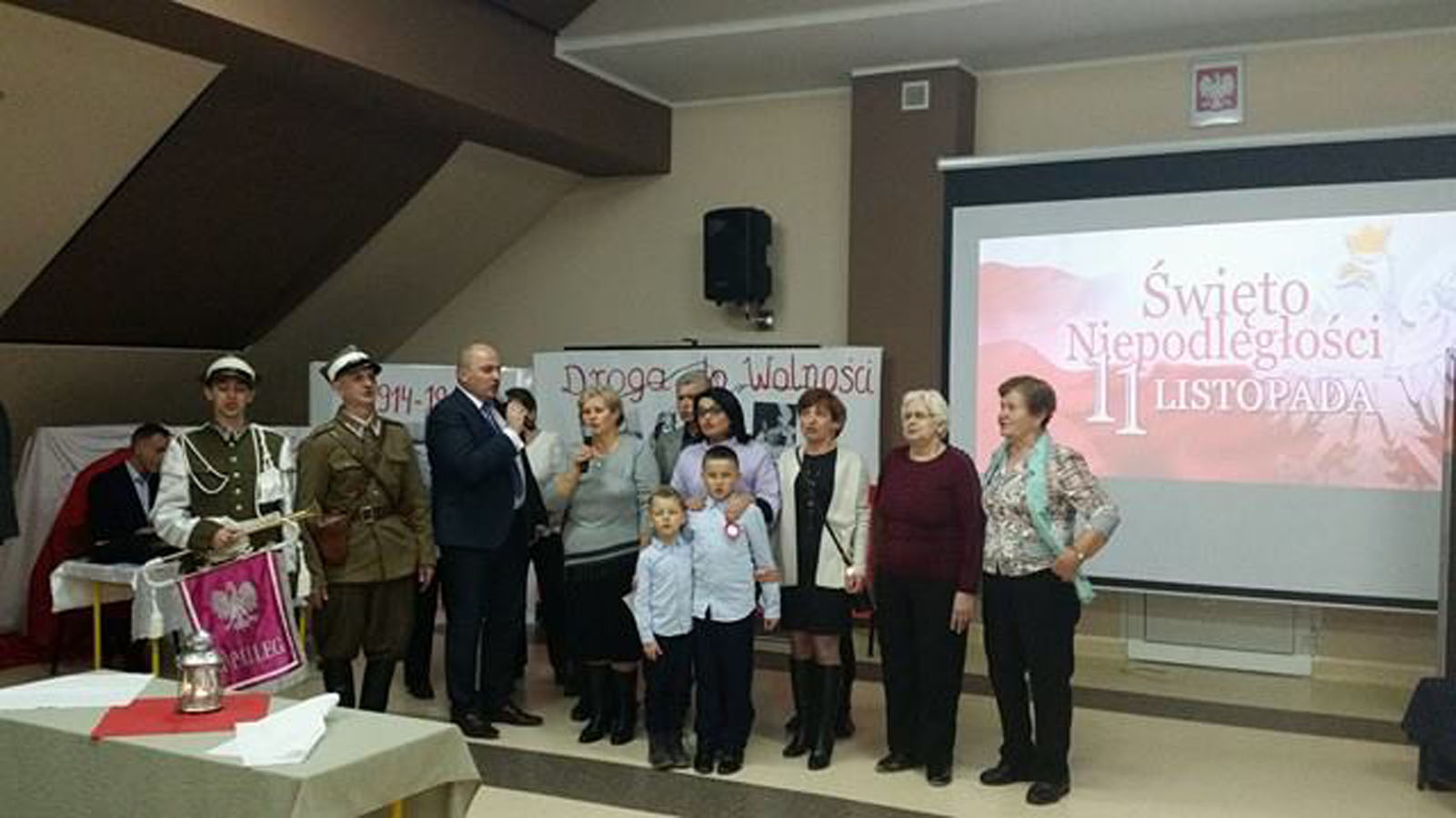 W piątek 18 listopada w Szkole Podstawowej im. Prymasa Tysiąclecia w Nadmie spotkały się różne środowiska: dzieci, młodzież, rodzice, dziadkowie, nauczyciele, ksiądz proboszcz, przedstawiciele władz samorządowych i zaproszeni goście wszyscy razem i wszystko po to, by ?Ocalić od zapomnienia? – ważne daty, ludzi, przedmioty? W cudownej rodzinnej atmosferze z piękną scenografią, przy stolikach z latarenkami z kawą i ciastkiem mogliśmy słuchać i oglądać przedstawienia przygotowanego przez uczniów tej szkoły. Dziadek i wnuczek ze scenariusza przybliżał ważne fakty z historii Polski. Nie kryto wzruszenia, kiedy najmłodsi tej szkoły śpiewali ważne patriotyczne pieśni. Pan dyrektor Krzysztof Czuba był niezwykle dumny ze swoich uczniów, którym podziękował za dostarczenie tak wielu wzruszeń, za chwile historii i za to, że pamiętają? Po przedstawieniu uczniów, które odbywało się przy asyście sztandarów szkoły i Ochotniczej Straży Pożarnej z Nadmy, nadszedł czas na kawał historii, którą przedstawili zaproszeni goście. Paweł i Iwona Zaniewscy z Kobyłki właściciele pierwszego prywatnego muzeum w powiecie wołomińskim Muzeum Oręża i Techniki Użytkowej przedstawili część swojej kolekcji. Pan Paweł opowiadał o swojej pasji a dzieci słuchały z ogromnym zainteresowaniem, oglądania nie było końca a zdjęcia z eksponatami robiły nie tylko dzieci. Mogliśmy dowiedzieć się, że muzeum jest w posiadaniu nawet kolekcji fajek, a nawet jedynej na świecie fajki ?Globus?. Uczniowie zaprosili pana Pawła na kolejną lekcję historii w ich szkole. Kolejna lekcja historii z Klubu Armii Krajowej z Radzymina. Pan Władysław Kolatorski i pani Magdalena Krysiak z młodzieżą z Gimnazjum Nr 1 im. mjr Stefana Waltera z Radzymina w bardzo ciekawy sposób opowiedzieli o działalności klubu i o tym jak ważne jest by pamiętać, by ocalić od zapomnienia i przekazywać tę pamięć młodym pokoleniom. Kolejnymi gośćmi byli pan Sławomir i Krystian Gajc – ojciec i syn ze Stowarzyszenia im. 2 Szwadronu 11 Pułku Ułanów Legionowych, piękne mundury, w których przybyli oczarowały wszystkich zebranych a taka pasja przekazana z ojca na syna jest ogromnym aktem pamięci i patriotyzmu. Kolejnym gościem, który odkrył kilka kart z historii był pan Marek Rogusz z Fundacji Historycznej Lotnictwa Polskiego i jego prezentacja m.in. pokazująca zdjęcia zestrzelonego samolotu w czasie II wojny światowej właśnie w Nadmie, zaciekawiły wszystkich tych najmłodszych i najstarszych. I jeszcze ciepłe słowa przedstawicieli władz i gości. A na koniec zostało już tylko wspólne śpiewanie pięknych patriotycznych pieśni . To był wyjątkowy niezapomniany wieczór. „Ocalić od zapomnienia?.? tak brzmiało hasło przewodnie tej rocznej Wieczornicy. My z pewnością będziemy pamiętać.