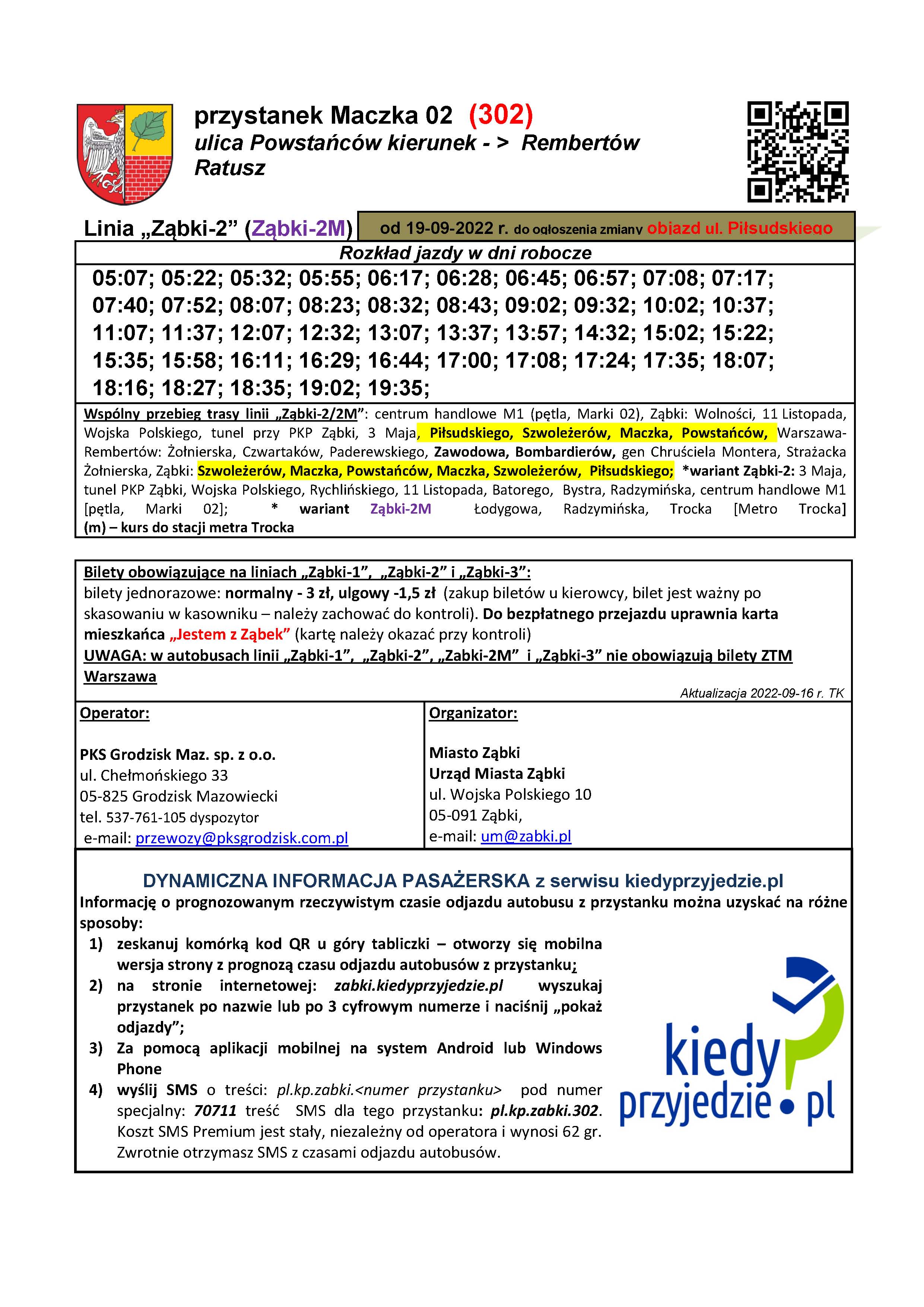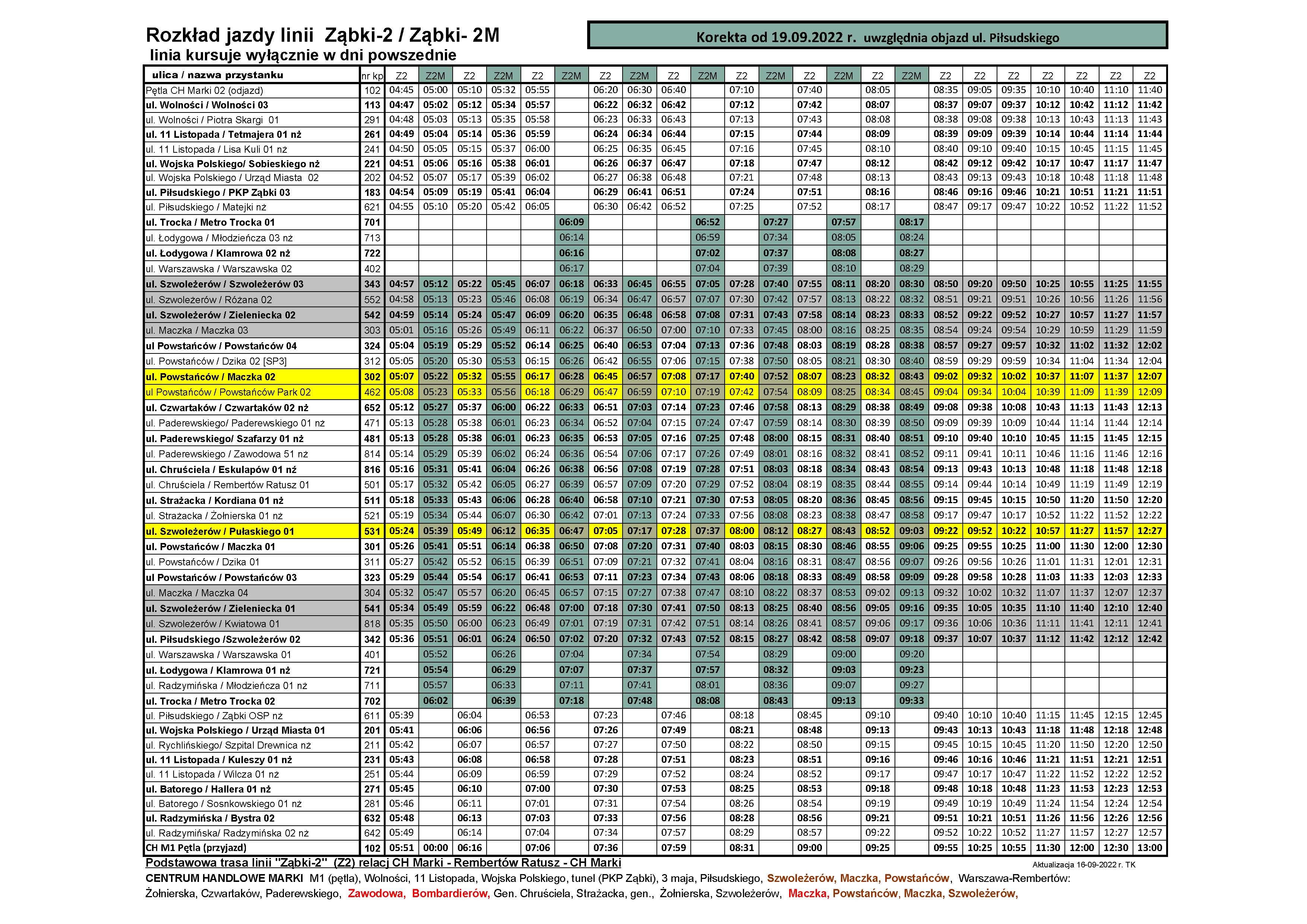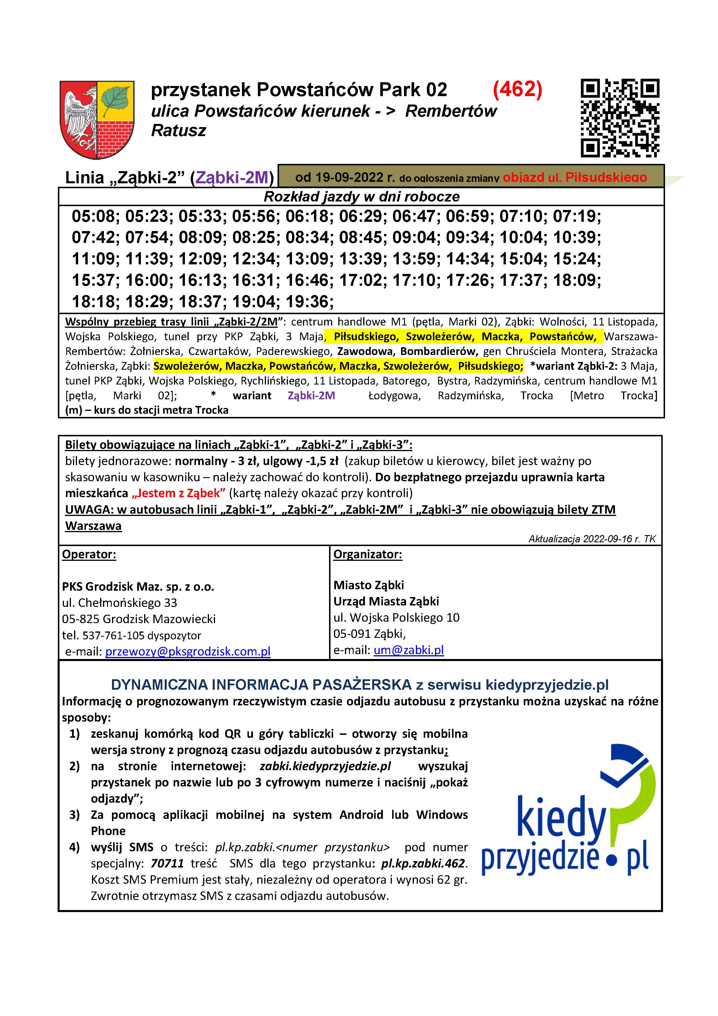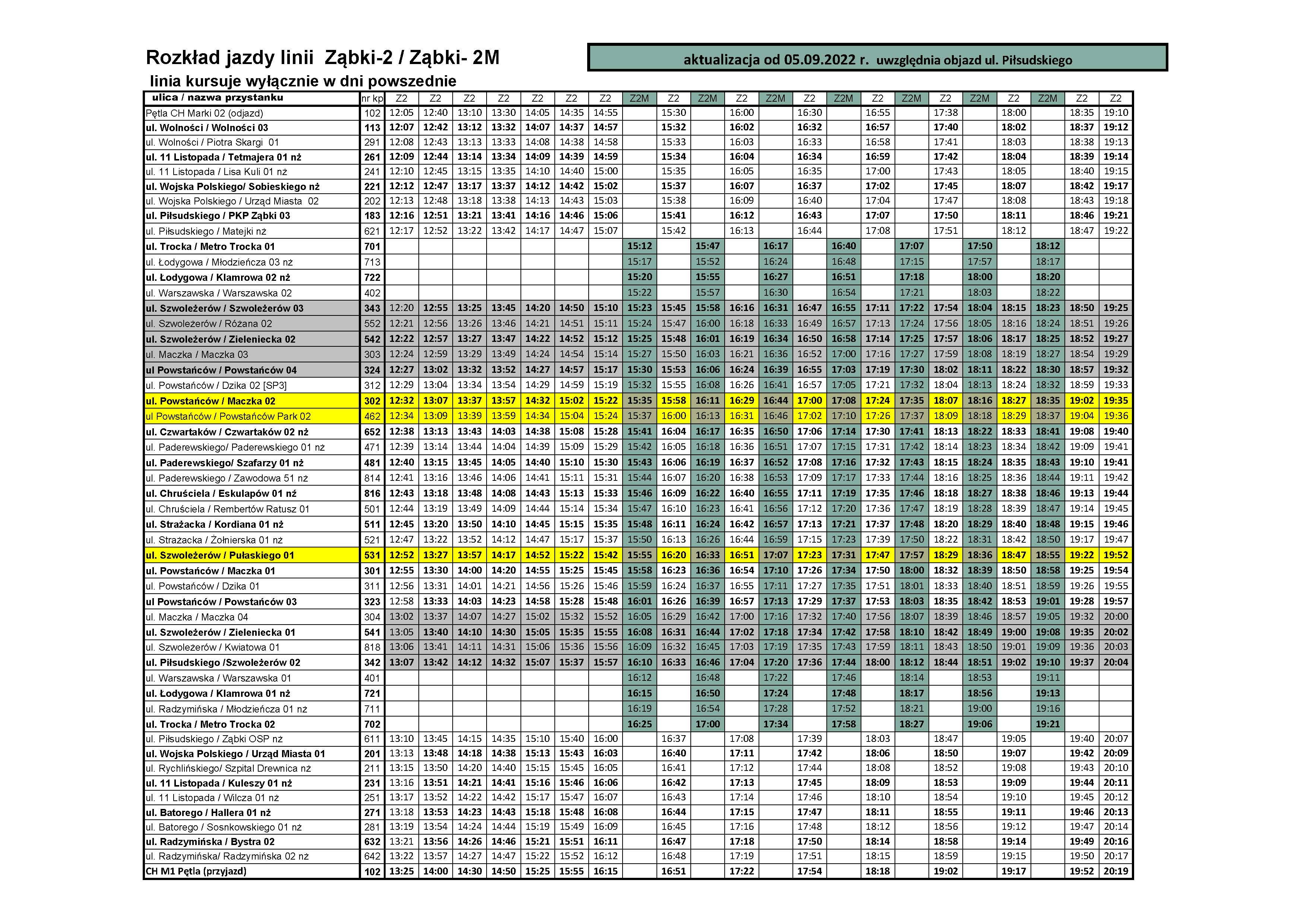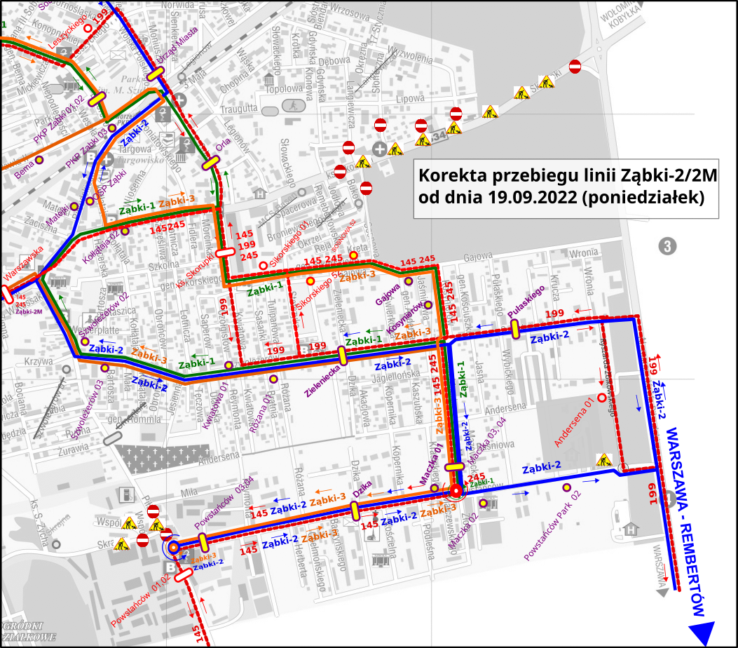 UM w Ząbkach informuje, że od dnia 19 września (poniedziałek) zmieni się trasa autobusów linii Ząbki-2/2M jadących w kierunku Rembertowa.