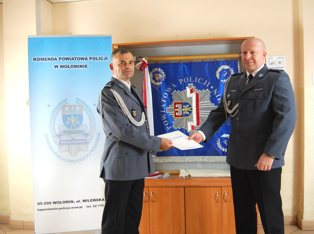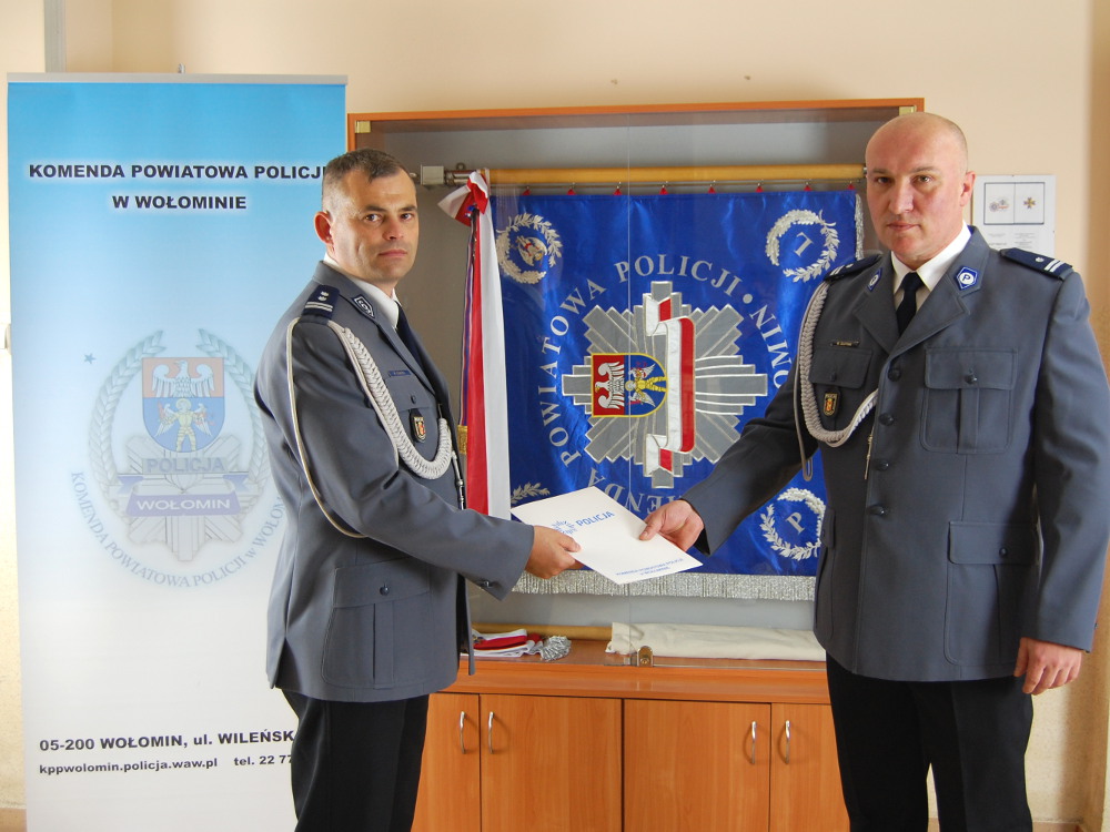 Rozkaz powołania na stanowisko Pierwszego Zastępcy Komendanta Powiatowego Policji w Wołominie odebrał podinspektor Rafał Trzaskoma, nadkomisarz Marcin Pałyska na stanowisko Komendanta Komisariatu Policji w Ząbkach, podinspektor Arkadiusz Dudziński na stanowisko Komendanta Komisariatu Policji w Tłuszczu, podinspektor Marcin Złotnik na stanowisko Naczelnika Wydziału Ogólnego KPP Wołomin. Wszystkie nominacje wręczył funkcjonariuszom Komendant Powiatowy Policji w Wołominie młodszy inspektor dr Marek Ujazda.