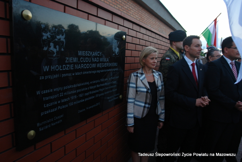 W środę (14 sierpnia) w Ossowie uroczycie odsłonięto tablicę poświęconą pomocy Narodu Węgierskiego w 1920r. Do Ossowa przyjechała delegacja XXI dzielnicy Budapesztu Csepel. Węgrzy w 1920 r. dostarczyli do Polski ogromną liczbę sztuk amunicji karabinowej.