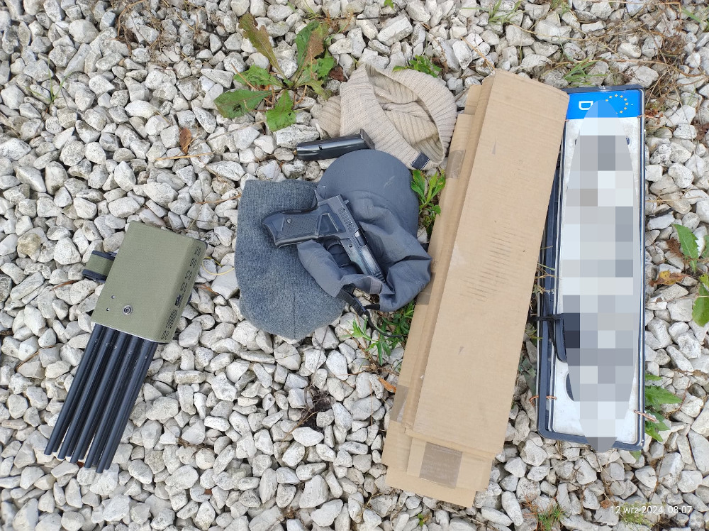 Policjanci podczas przeszukania miejsca zamieszkania mężczyzn odnaleźli i zabezpieczyli liczne tablice rejestracyjne, zagłuszarkę sygnału GPS/GSM, broń hukową,  a także urządzenie elektroniczne służące do kradzieży z włamaniem samochodów ukryte w łazience wewnątrz rolki z papierem toaletowym.