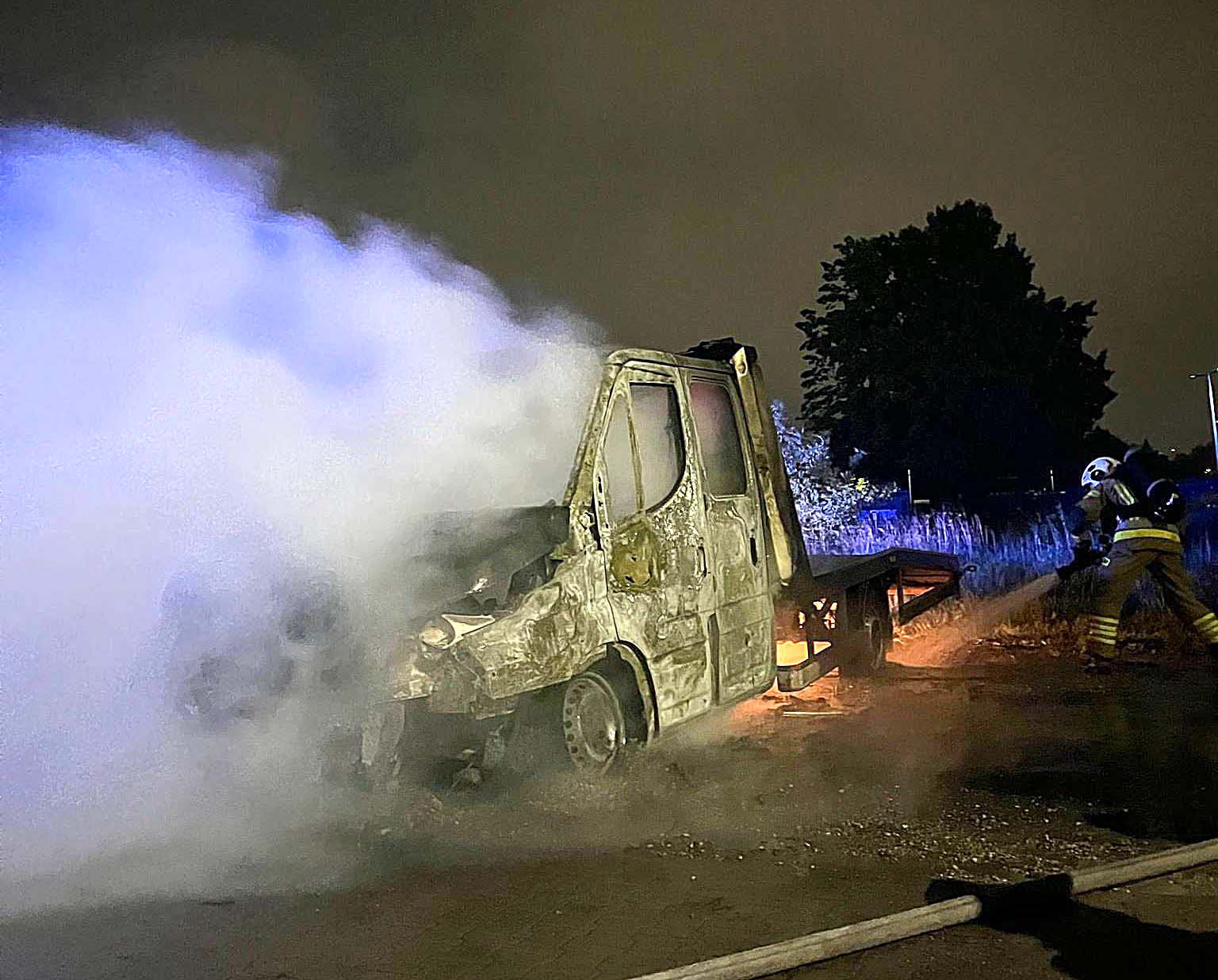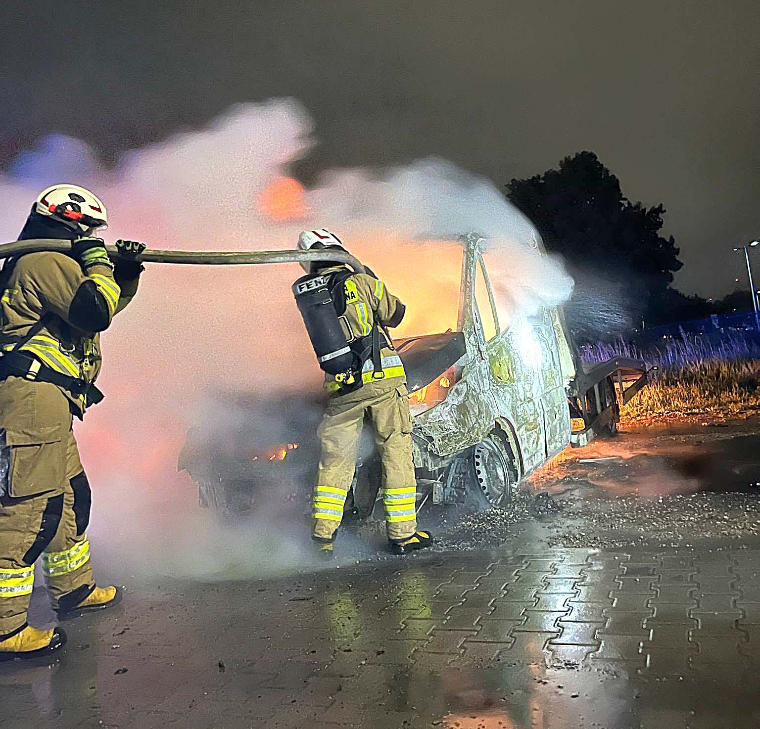 W Ząbkach, na ulicy Jesiennej, doszło do pożaru samochodu dostawczego. Do działań zadysponowano dwa zastępy straży pożarnej: Jednostkę Ratowniczo-Gaśniczą z Wołomina oraz druhów Ochotniczej Straży Pożarnej z Ząbek. Obecna na miejscu policja zabezpieczyła teren, zapewniając swobodę działania ekipie gaśniczej.
