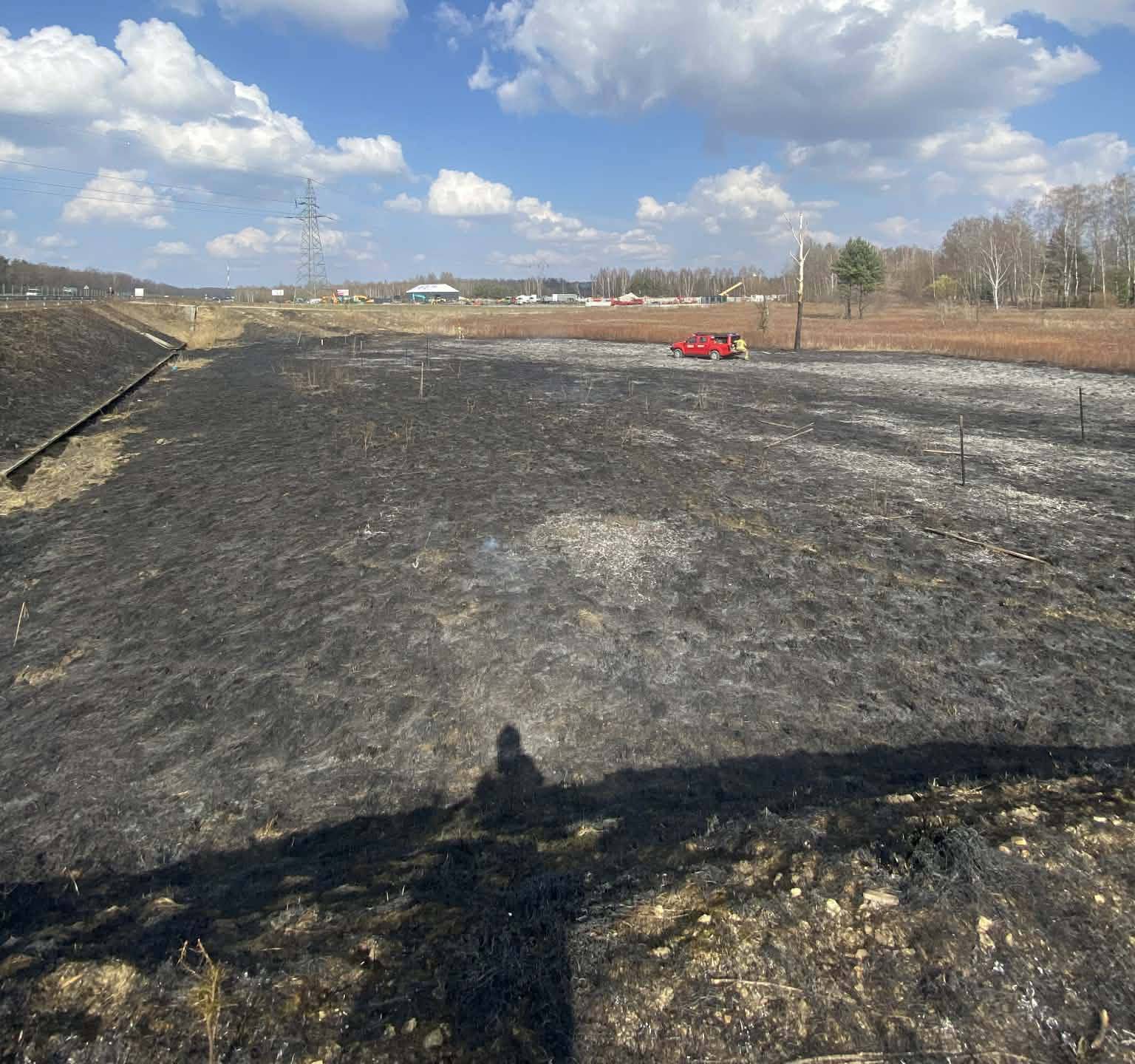 W czwartek, 19 marca 2026 roku, w Kobyłce doszło do groźnego pożaru nieużytków rolnych. Ogień objął rozległy teren, błyskawicznie trawiąc suchą roślinność i pozostawiając po sobie czarną, spaloną ziemię. Na miejscu interweniowały jednostki Państwowej i Ochotniczej Straży Pożarnej.