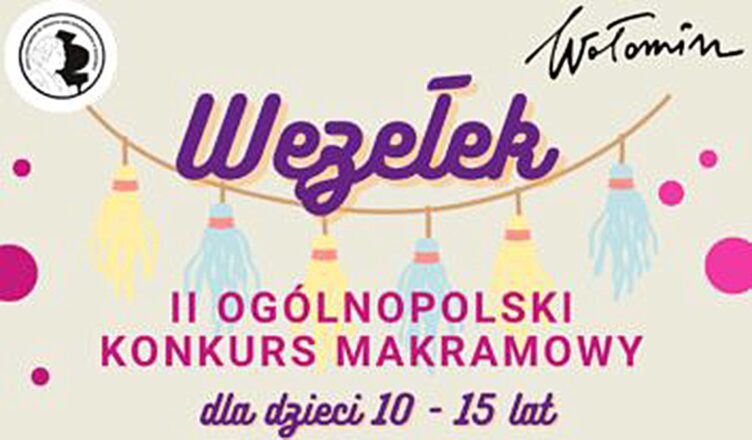 UM Wołomin wraz ze Szkołą Podstawową im. Ignacego Jana Paderewskiego w Zagościńcu – serdecznie zaprasza dzieci w wieku 10-15 lat do udziału w Ogólnopolskim Konkursie Makramy „Węzełek”. Konkurs jest objęty patronatem Burmistrz Wołomina Elżbiety Radwan.