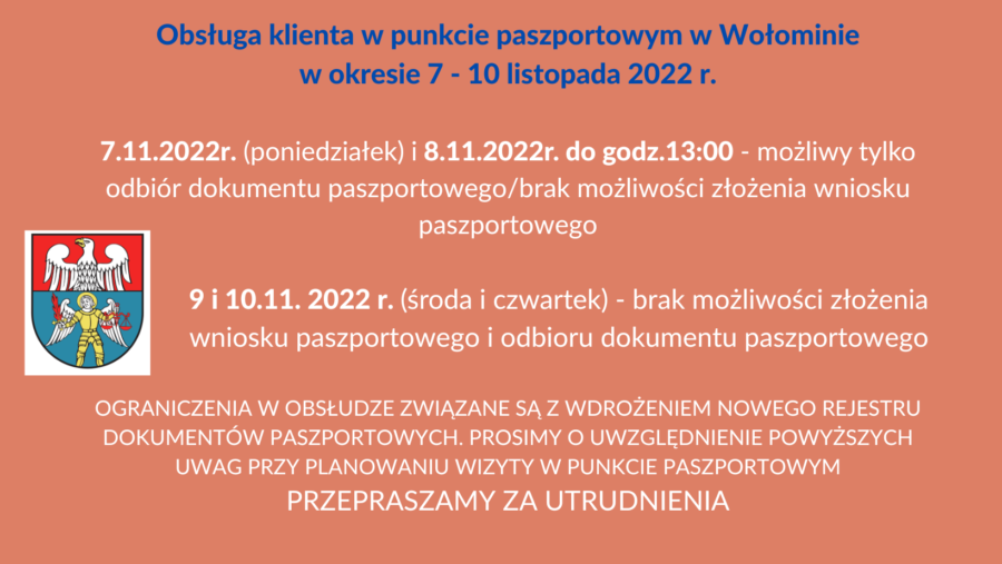 W związku z wdrażaniem nowego Rejestru Paszportów w listopadzie, w punktach paszportowych na terenie całego kraju zostanie ograniczona obsługa interesantów.