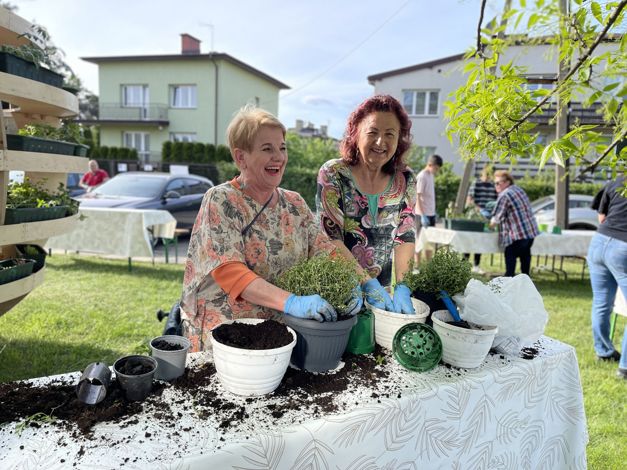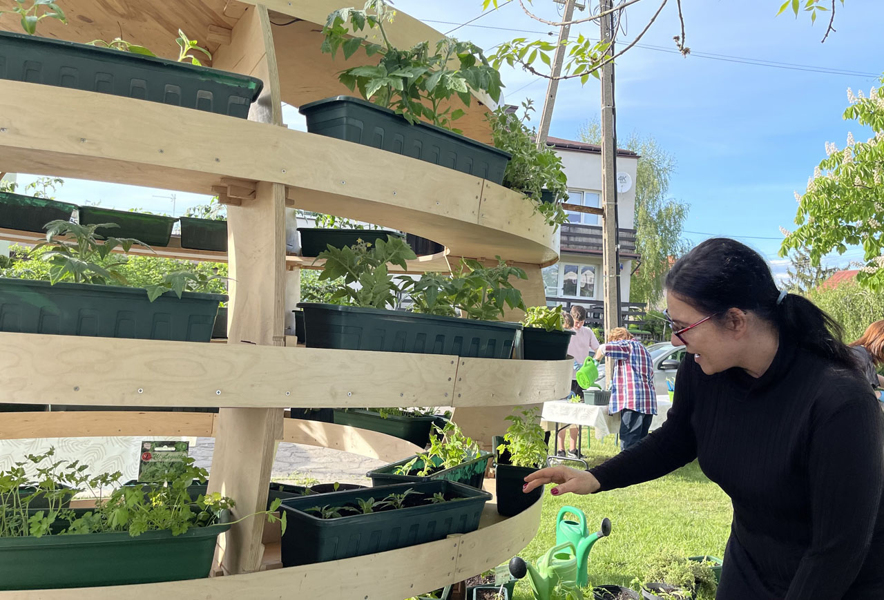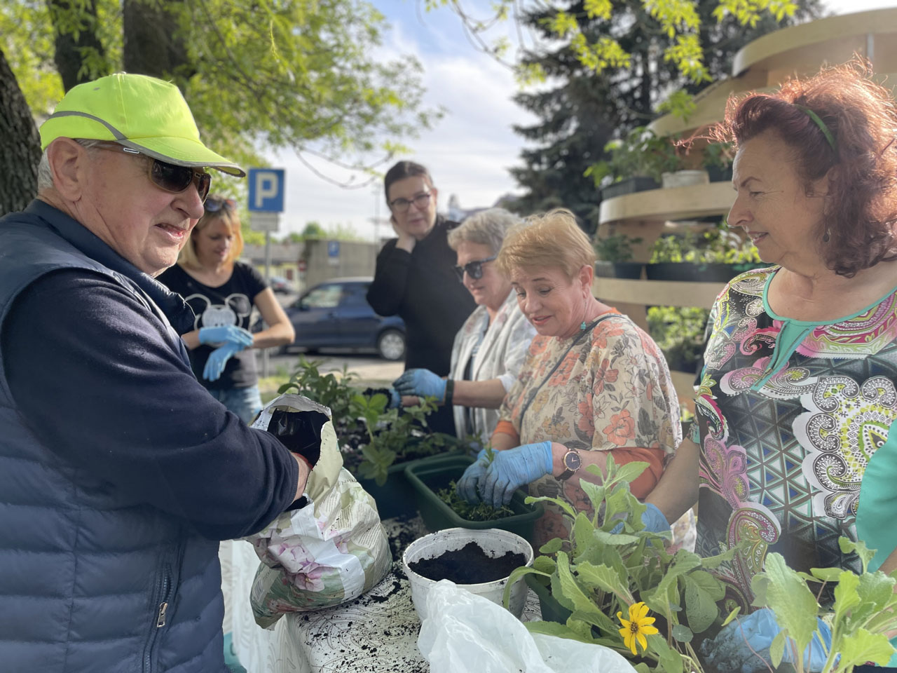 Sadzenie roślin do kuli, czyli finał całego procesu, było również elementem integracji – przy sadzonkach spotkali się nie tylko dorośli, ale także młodzież i dzieci. Dyskutowano nad sposobami sadzenia, młodzież słuchała wskazówek seniorów, pokazywano sobie, w jaki sposób rozdzielić bezpiecznie korzenie, jak łączyć różne gatunki roślin w doniczkach. Efekt jest wspaniały ? nawet niewielkie jeszcze rośliny tworzą bardzo sympatyczne, zielone miejsce, zdobiące skwerek przed Urzędem Miasta. Jeśli ziołom i warzywom uda się rozrosnąć, to Kobyłka zyska naprawdę miły kącik do odpoczynku, a przy tym do skorzystania z upraw ? w niewielkiej kuli rośnie bazylia, tymianek, rozmaryn, kolendra, czarnuszka, hyzop lekarski, dziurawiec, rumianek, zioła miododajne, ogórecznik, kwiaty jadalne, szczypior, mięta, lubczyk, pietruszka, ale także seler naciowy, fasola, jarmuż, truskawki, poziomki, wiele odmian pomidorów, papryka i dynia.