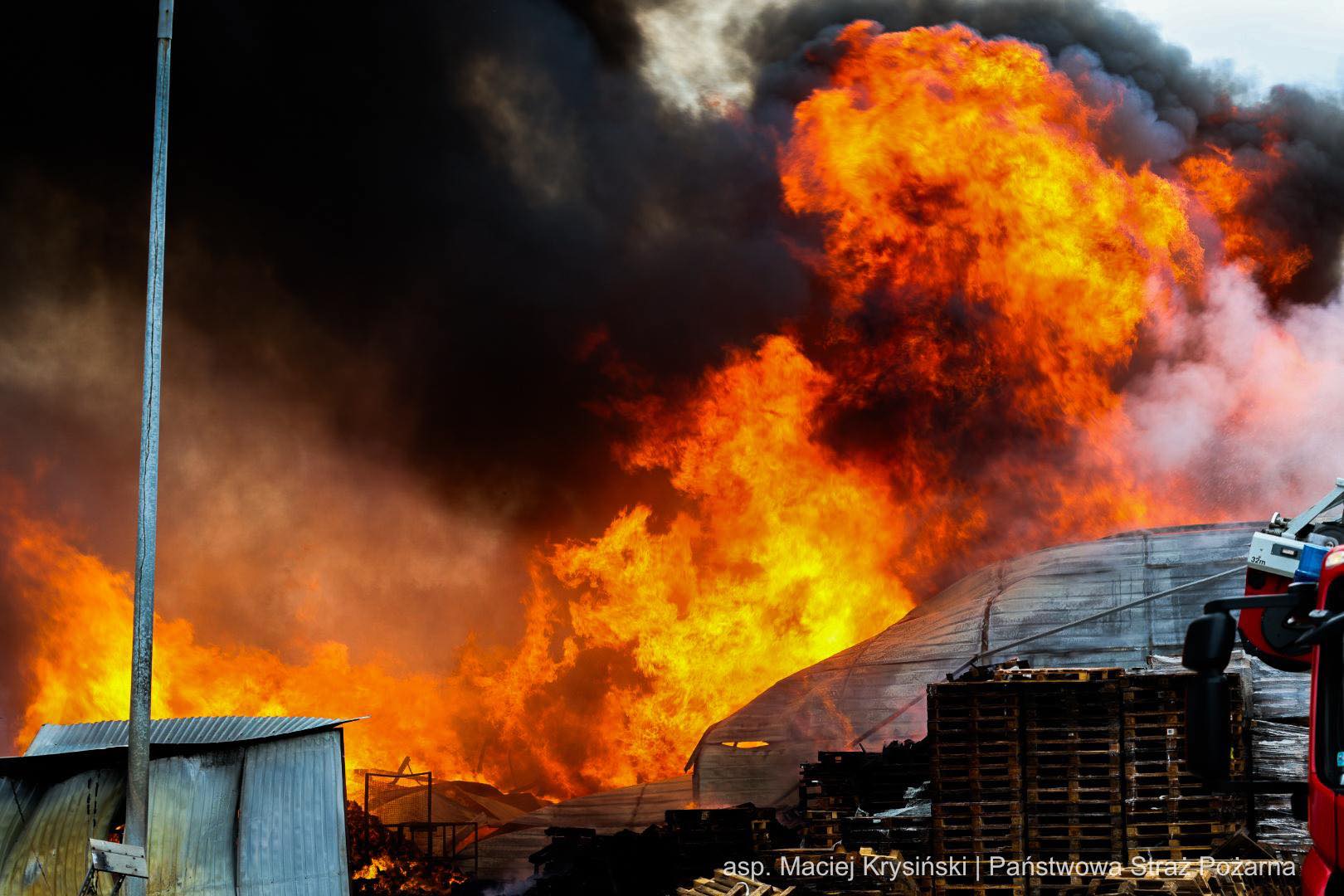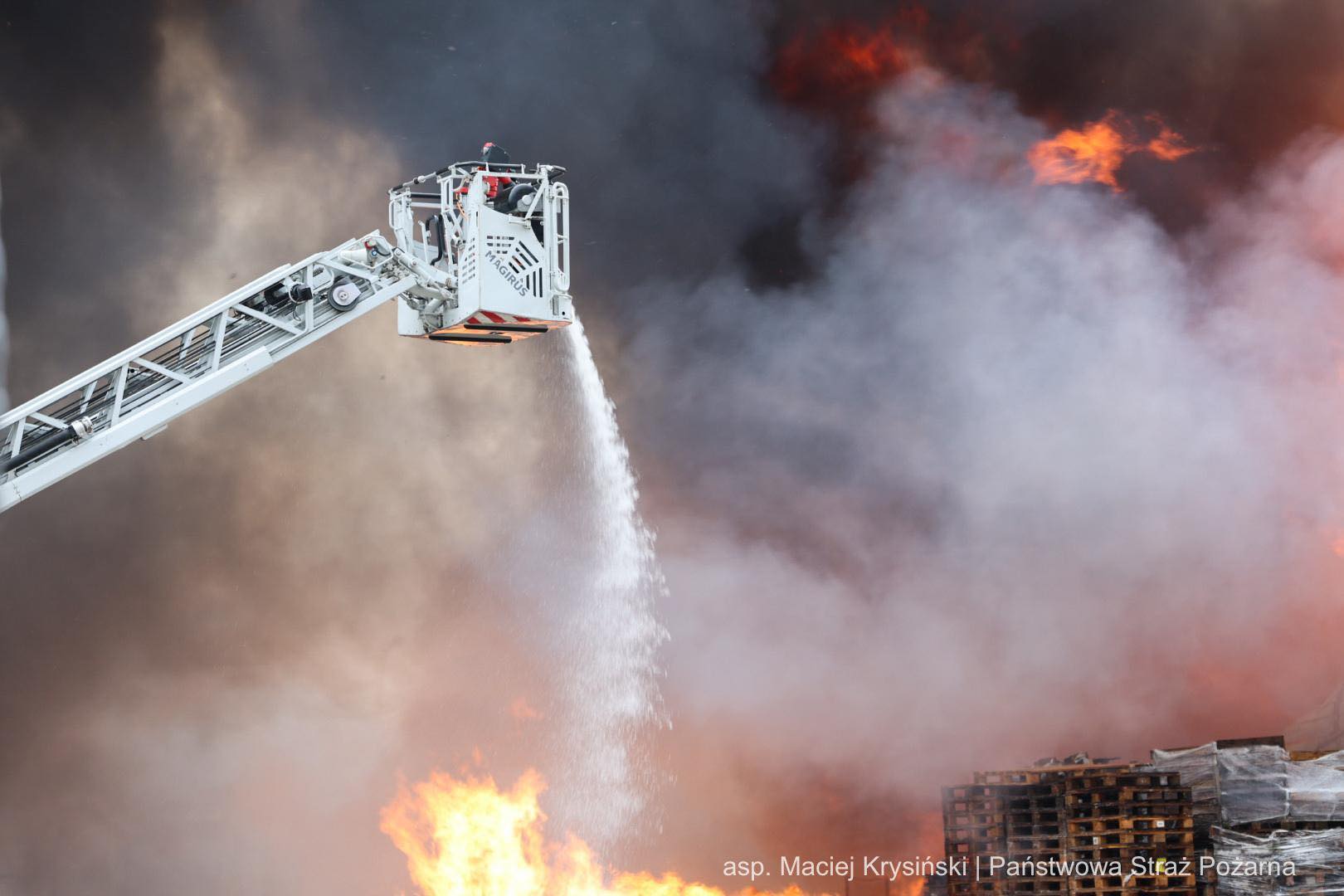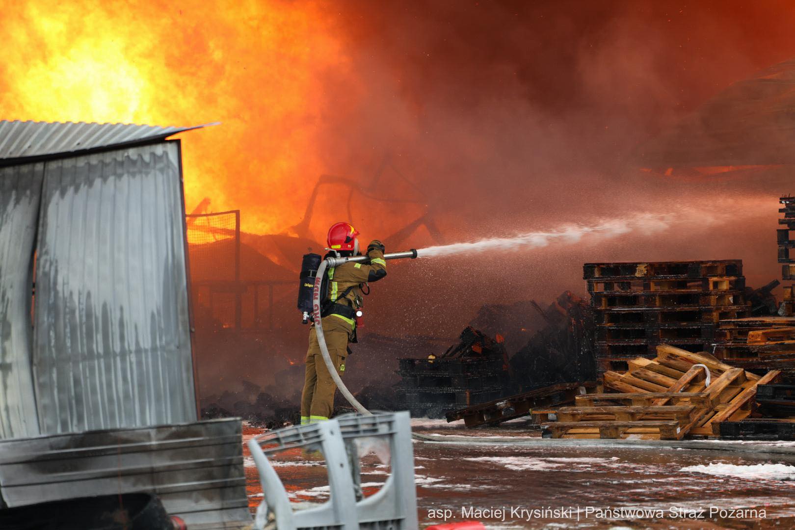 Strażacy koncentrują się na dwóch kluczowych celach: opanowaniu głównego ogniska pożaru oraz niedopuszczeniu do jego dalszego rozprzestrzeniania się na sąsiednie obiekty i tereny otwarte. Sytuacja jest trudna – łatwopalne materiały, takie jak palety i kartony, sprzyjają szybkiemu rozwojowi ognia.