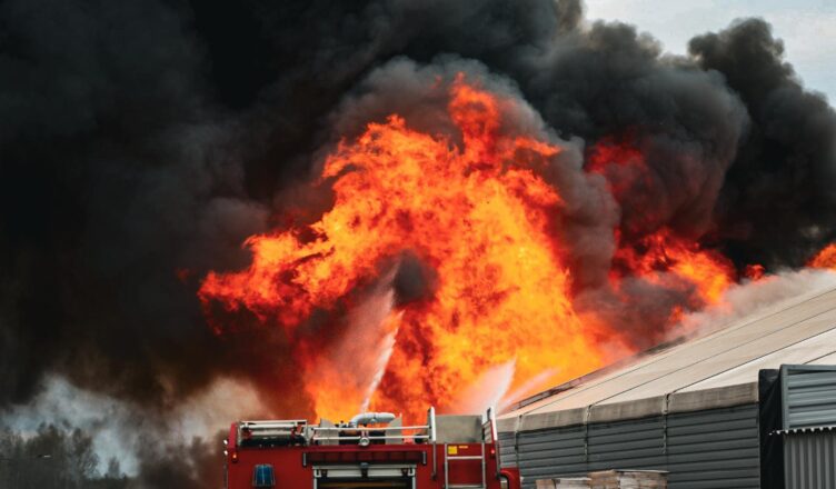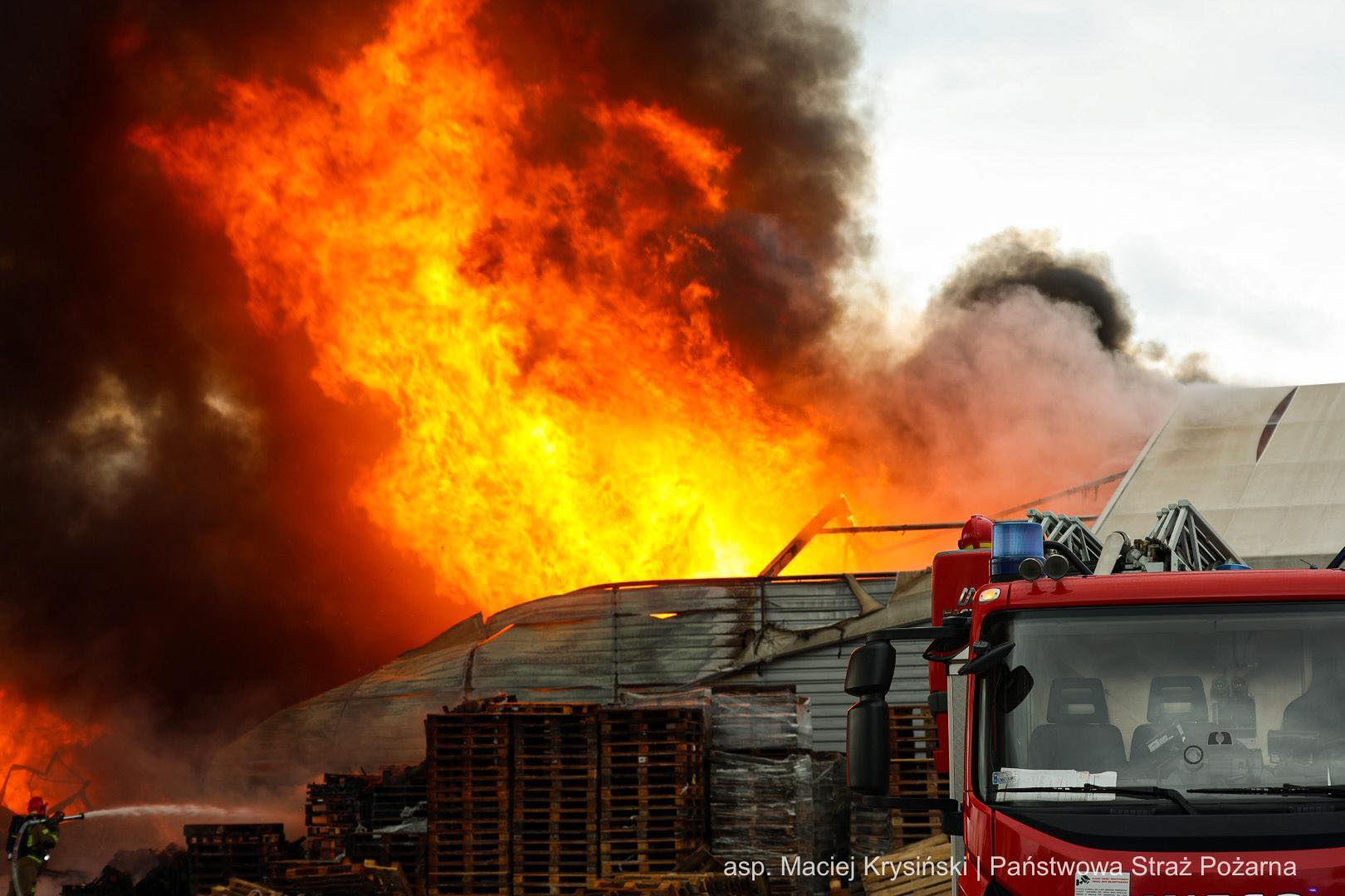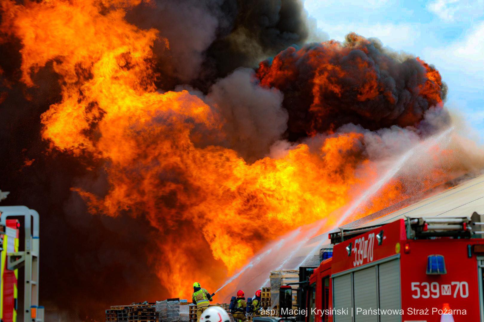 Ogromny pożar hali przy trasie S7 – słup dymu widoczny z kilometrów, trwa dramatyczna walka z żywiołem